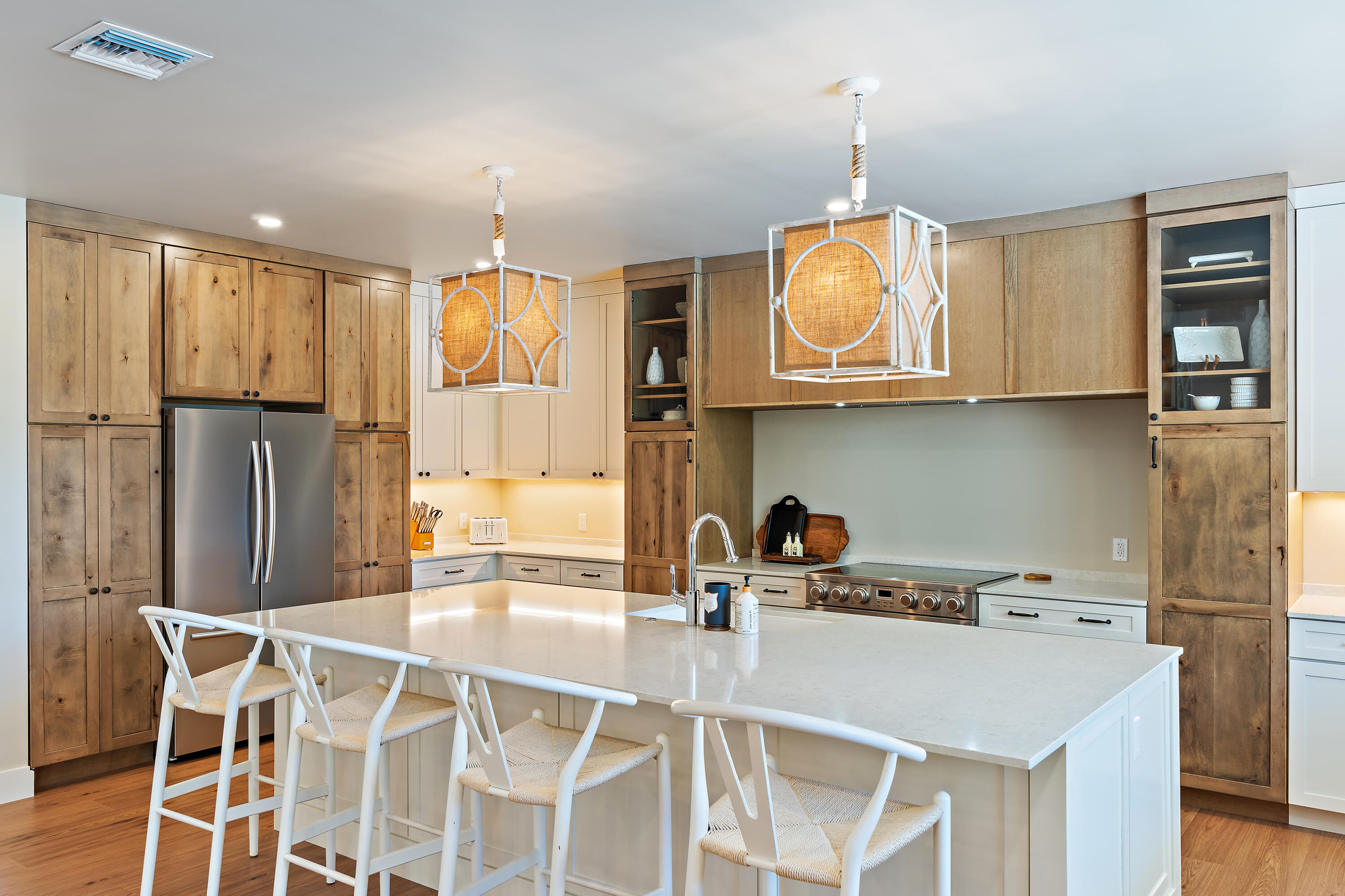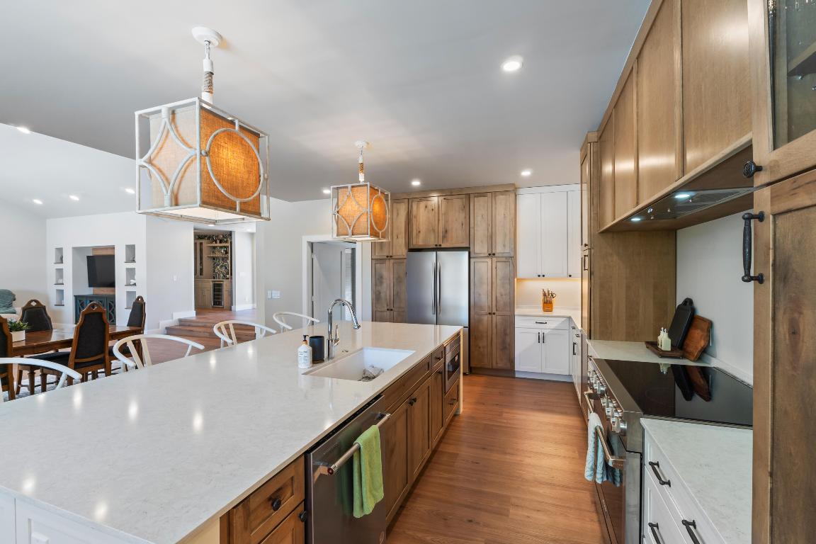 READ MORE... The open-concept interior boasts vaulted ceilings, abundant natural light, and a professionally crafted kitchen with Rustic Maple and Dove White cabinetry, quartz countertops, and generous storage all with sweeping golf and lake views.