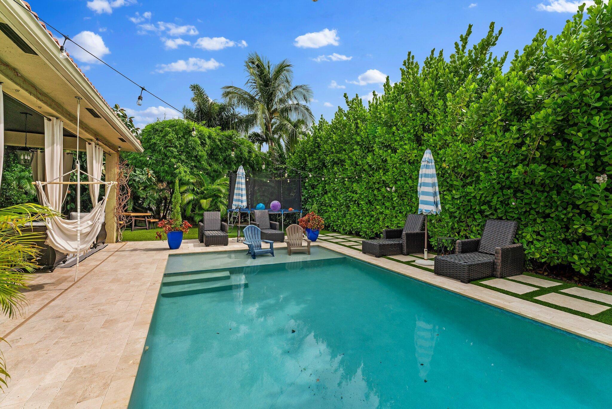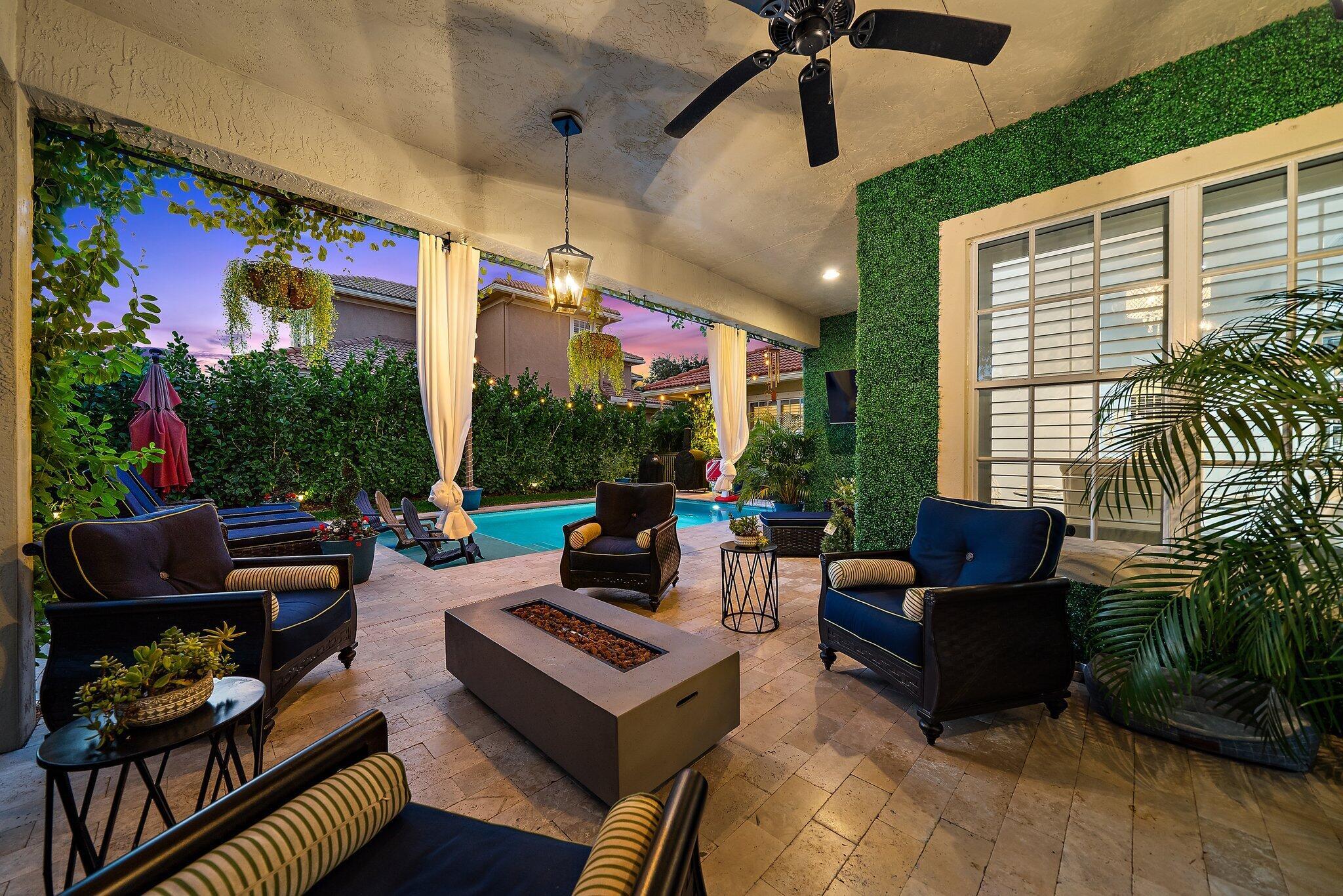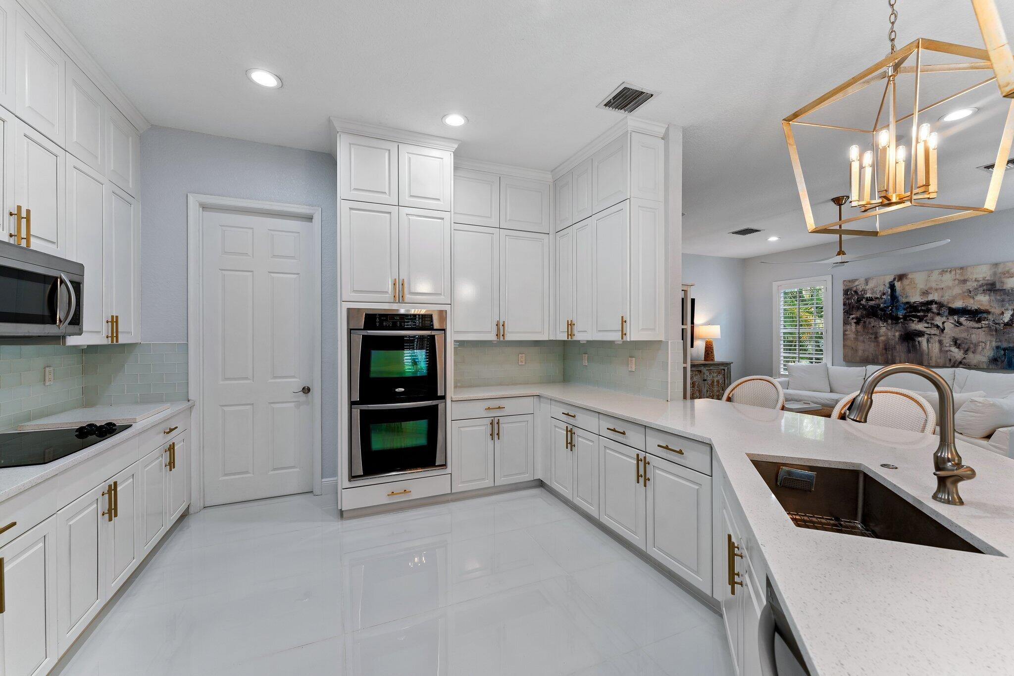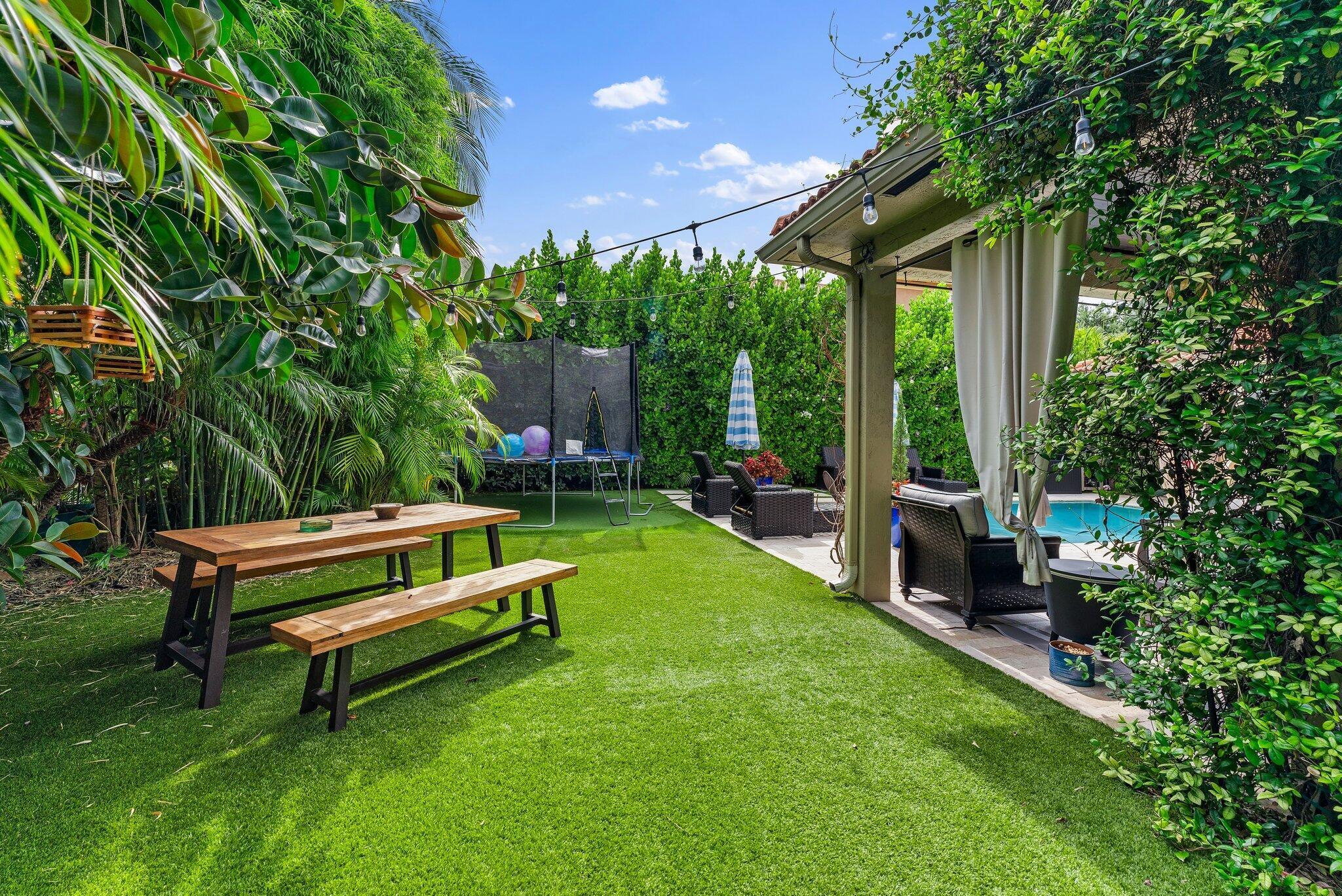 Welcome to your dream home in the sought-after Paseos community of Jupiter, FL! This stunning 5-bedroom, 3.5-bathroom residence, complete with a den, offers luxurious living at its finest.As you step inside, you'll be greeted by the gleaming white 48x24 porcelain tiles that flow seamlessly through the living areas. The formal dining and living rooms provide an elegant space for entertaining guests.The heart of the home is the gorgeous kitchen, featuring soft-close cabinets, sleek quartz countertops, and a convenient wet bar. The kitchen opens to a bright breakfast nook and a spacious family room, with French doors that lead to a spectacular saltwater pool, built in 2019. The backyard is a paradise for families, with artificial turf offering plenty of space for kids to play.