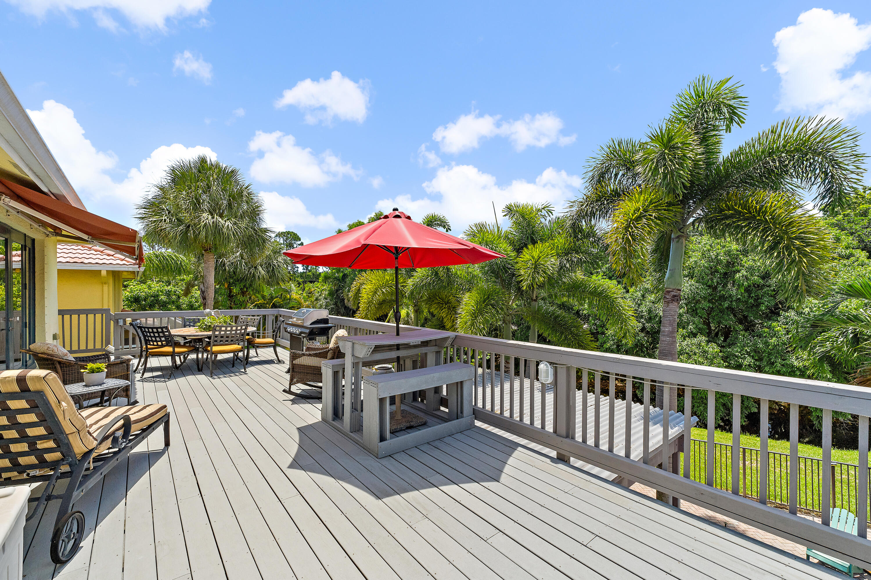 Situated on a premium oversized lot with tranquil water views, the property provides exceptional privacy and natural beauty. The fully fenced backyard features decorative pavers and lush landscaping with PLENTY OF ROOM FOR A POOL, outdoor kitchen, or custom backyard oasis. Multiple outdoor living spaces include a covered patio on the main level and a large composite deck upstairs, perfect for enjoying Florida living year-round.