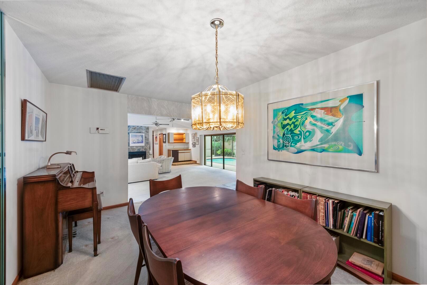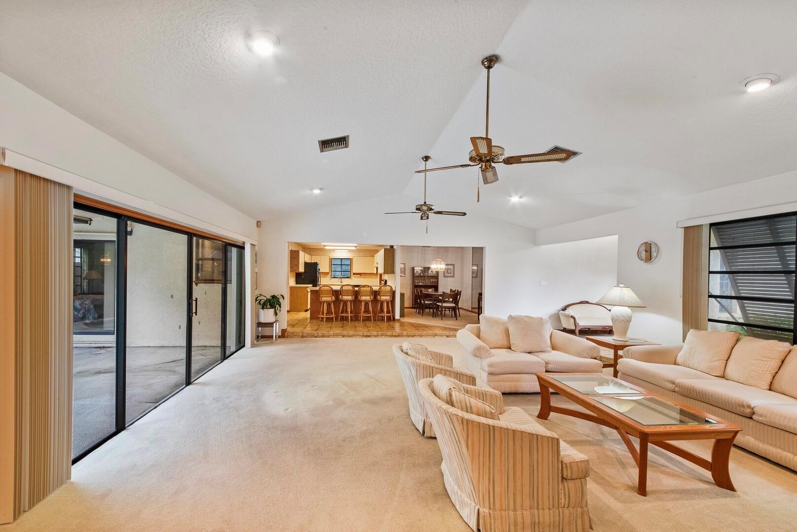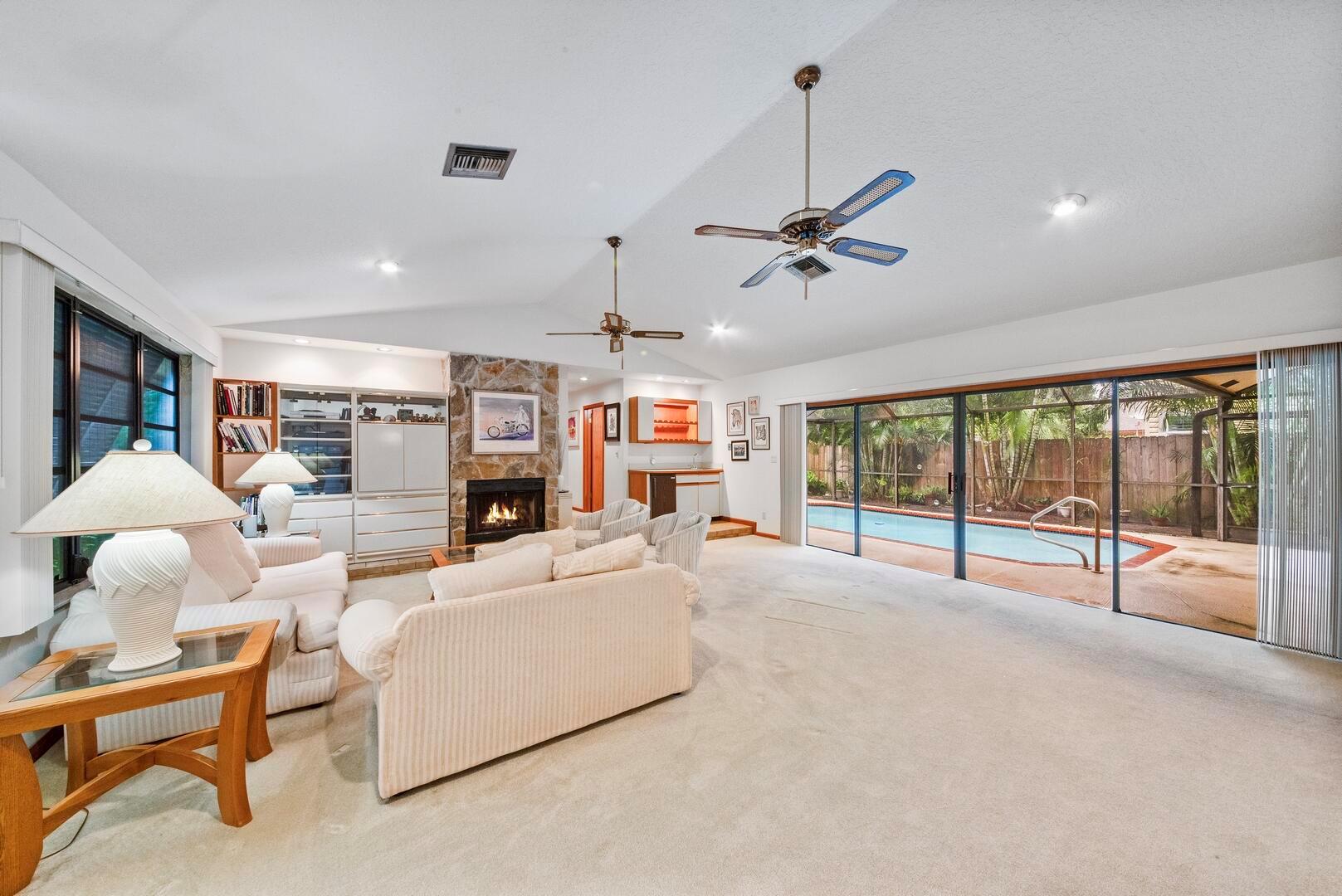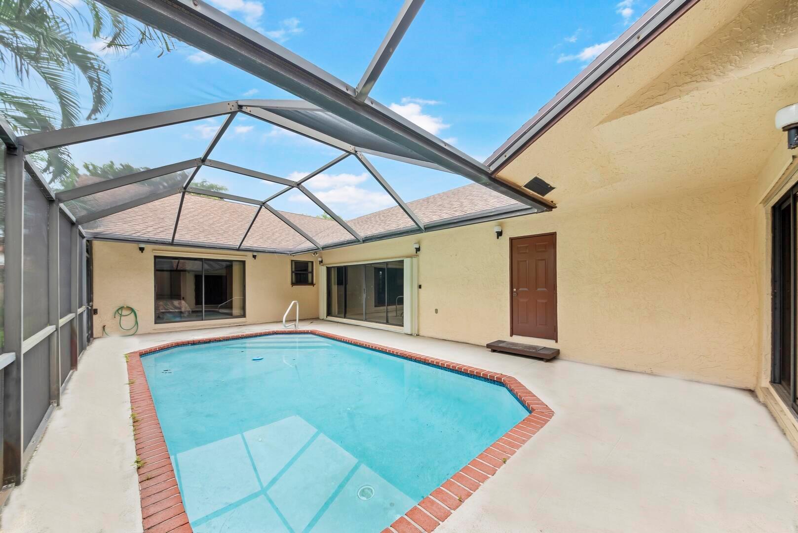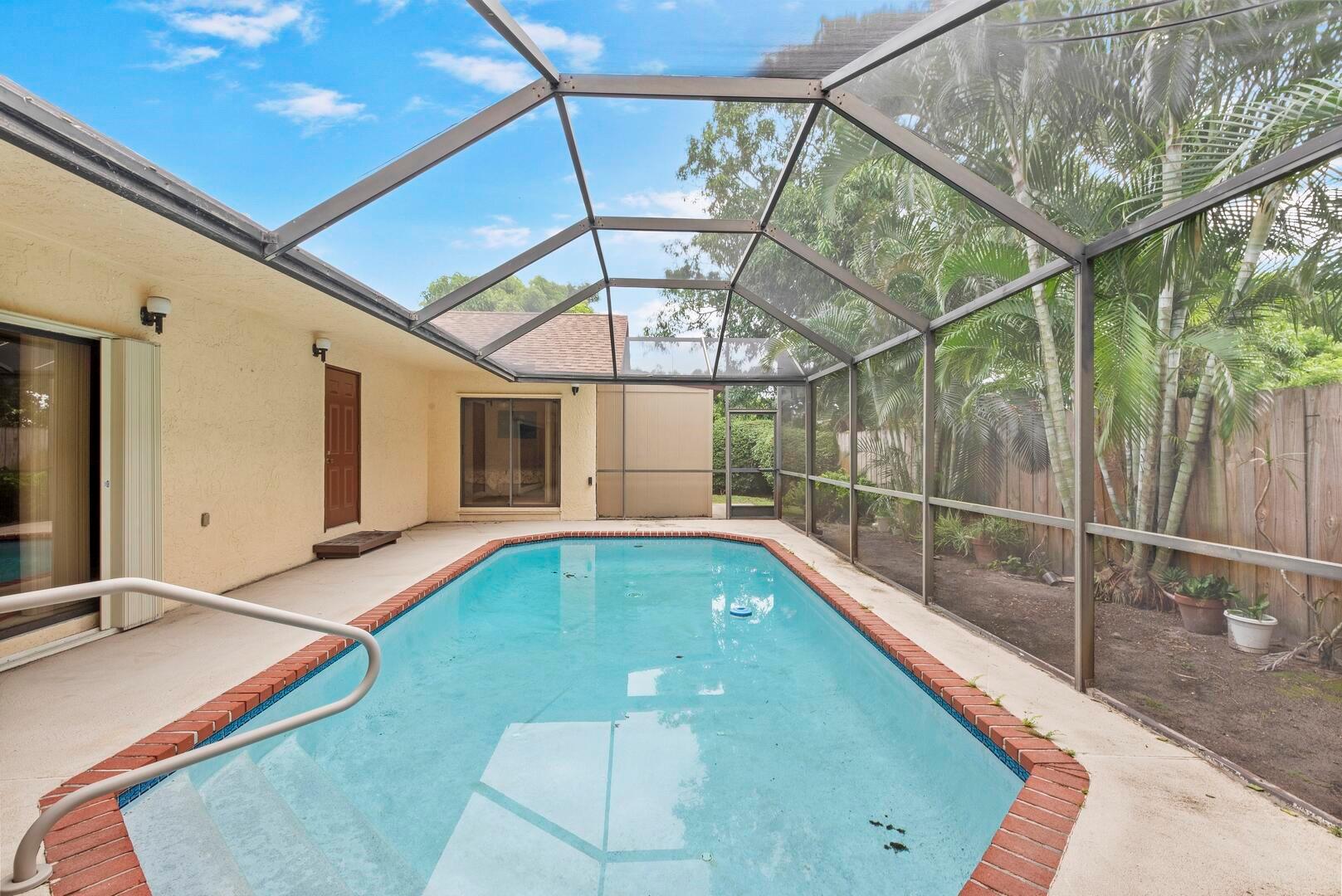 Welcome to this charming 3-bedroom, 2-bathroom home, perfectly situated on a peaceful cul-de-sac with no HOA restrictions. The inviting sunken living room features a cozy wood-burning fireplace, vaulted ceilings, and a wet bar, ideal for entertaining. The spacious kitchen offers plenty of cabinet and counter space, a large snack bar, a pantry, and a charming breakfast nook. The primary suite is a retreat of its own, with a sliding door leading to the pool area, a large walk-in closet, dual sinks, and a walk-in shower. Throughout the home, you'll find smooth walls and high-hat lighting for a modern, clean look. Step outside to your private oasis--a large, screen-enclosed patio overlooking a custom pool and a fully fenced, private yard. Perfect for both relaxation and outdoor fun!