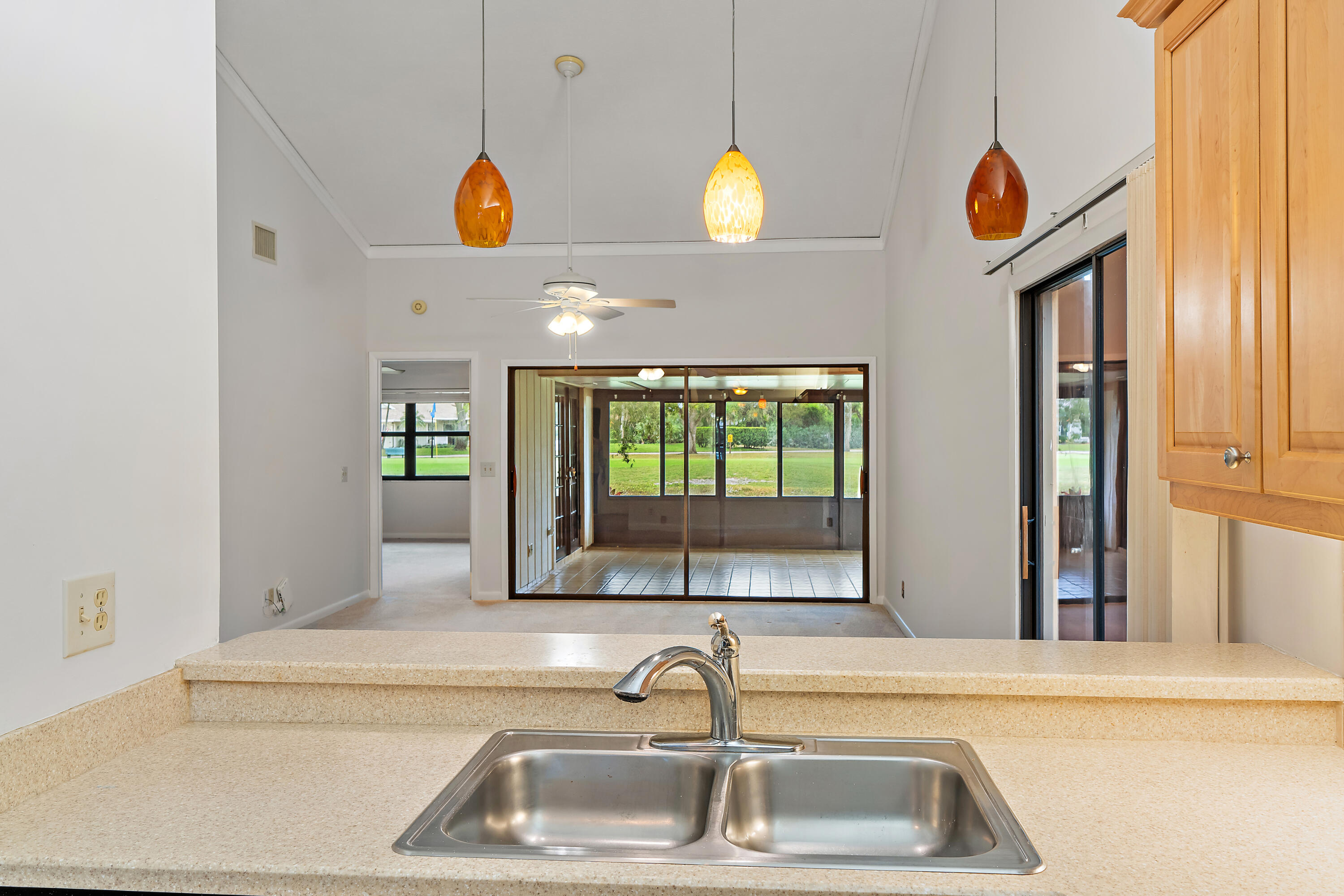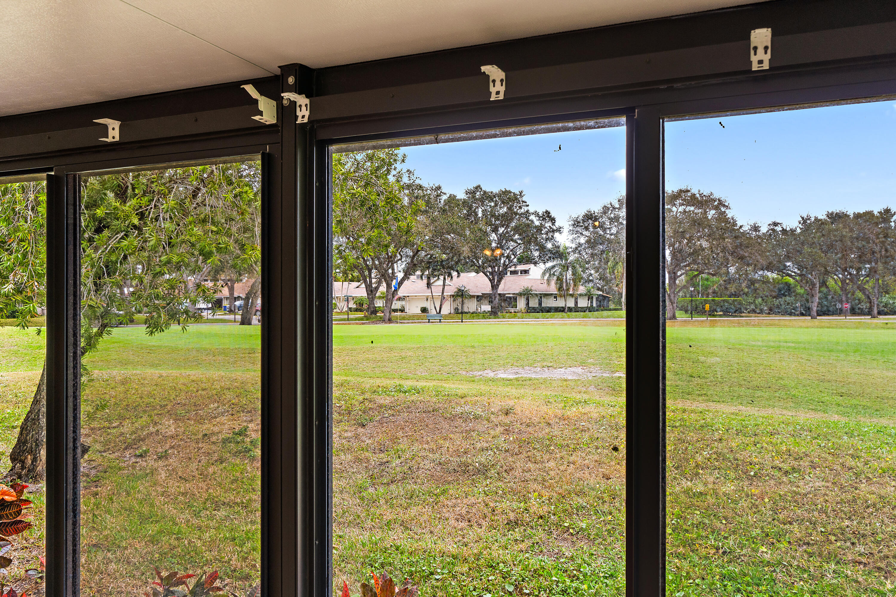 Welcome to this well-maintained 2-bedroom, 2-bath single-family home in the desirable 55+ golf community of Eaglewood in Hobe Sound. The home offers peace of mind with a new roof (2023), HVAC system (2018), and hot water heater (2024), along with a combination of impact glass and accordion shutters for storm protection. Situated directly on the golf course, the property enjoys serene fairway views from the primary bedroom and the enclosed patio. The 272-square-foot patio has HVAC ducting extended from the main house, allowing it to be utilized as air-conditioned indoor space if desired. Inside, the kitchen features light oak cabinetry and stainless-steel appliances, creating a warm and functional living space. Eaglewood residents enjoy a resort-style lifestyle with unlimited golf included, featuring a clubhouse with commercial kitchen, 18-hole executive golf course and putting green, large heated pool and spa, tennis and bocce courts, dog park, golf pro shop, and covered outdoor grilling areas. On-site staff manage administration, maintenance, and golf operations, and a full calendar of tournaments, socials, and community events creates a vibrant, welcoming atmosphere. All of this is just minutes from Hobe Sound's beaches, dining, and everyday conveniences.