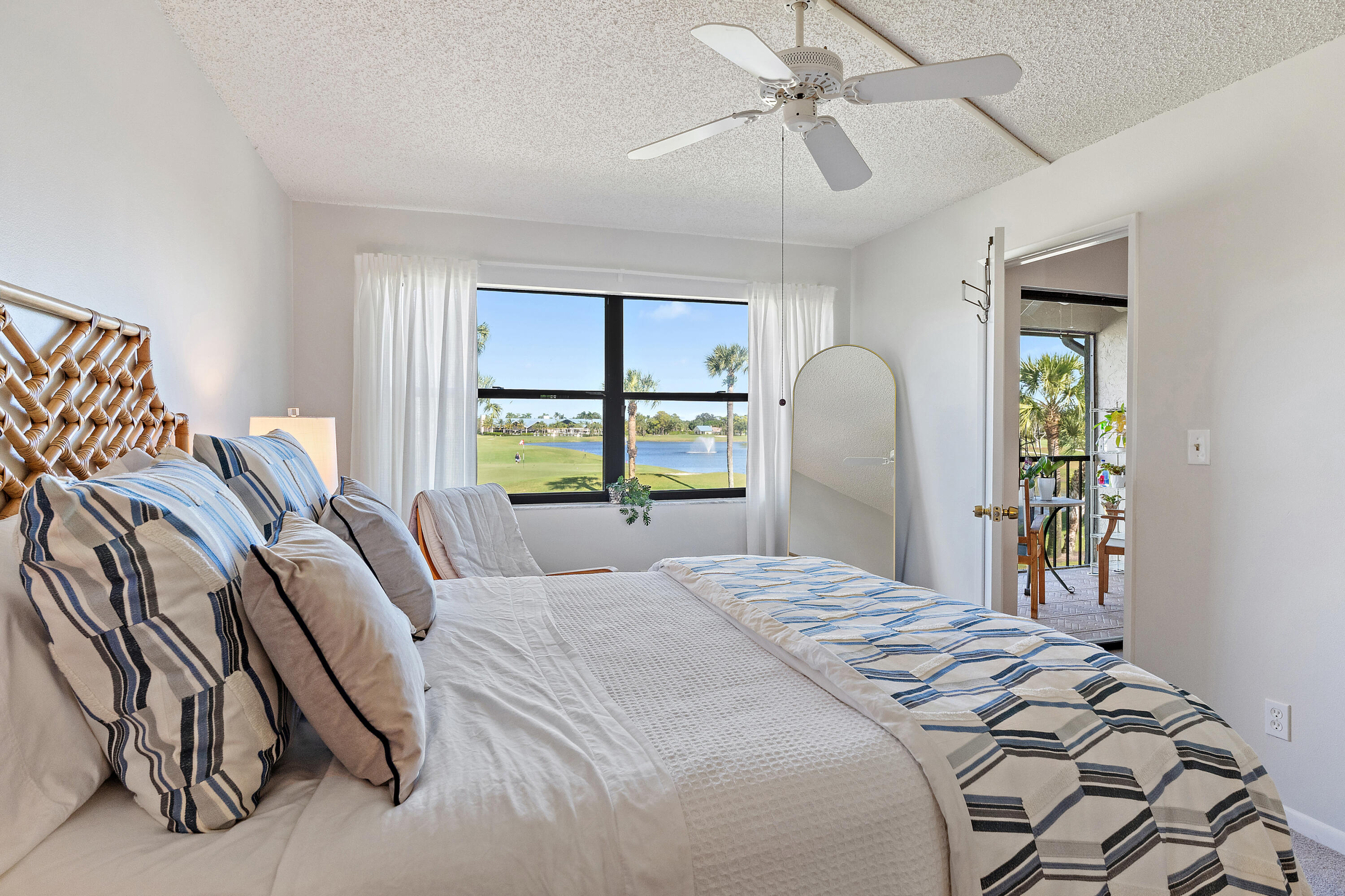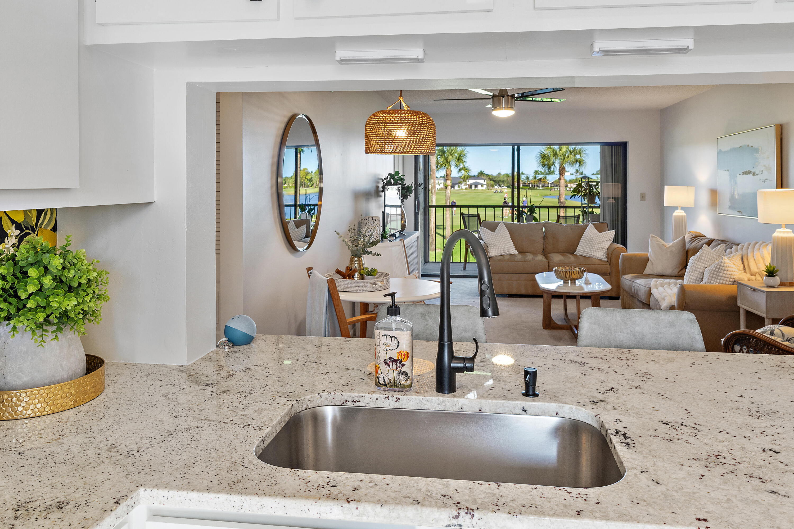 Welcome to this charming 2 bedroom, 2 bath condo in the gated Eastpointe Country Club community, offering spectacular golf and lake views from the comfort of home. This light and bright residence features white kitchen cabinetry with granite countertops, tile flooring in main areas, and accordion shutter hurricane protection for peace of mind.