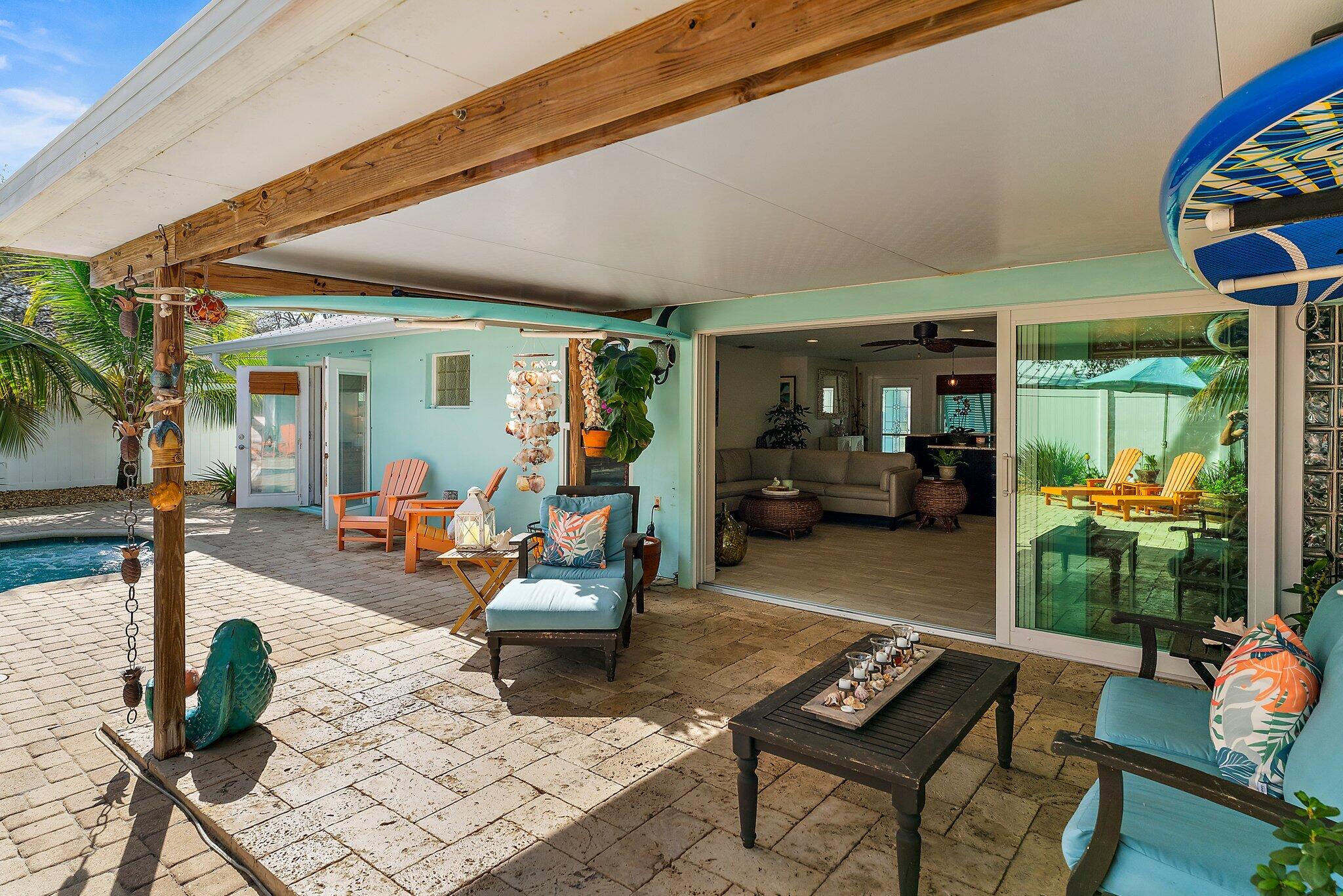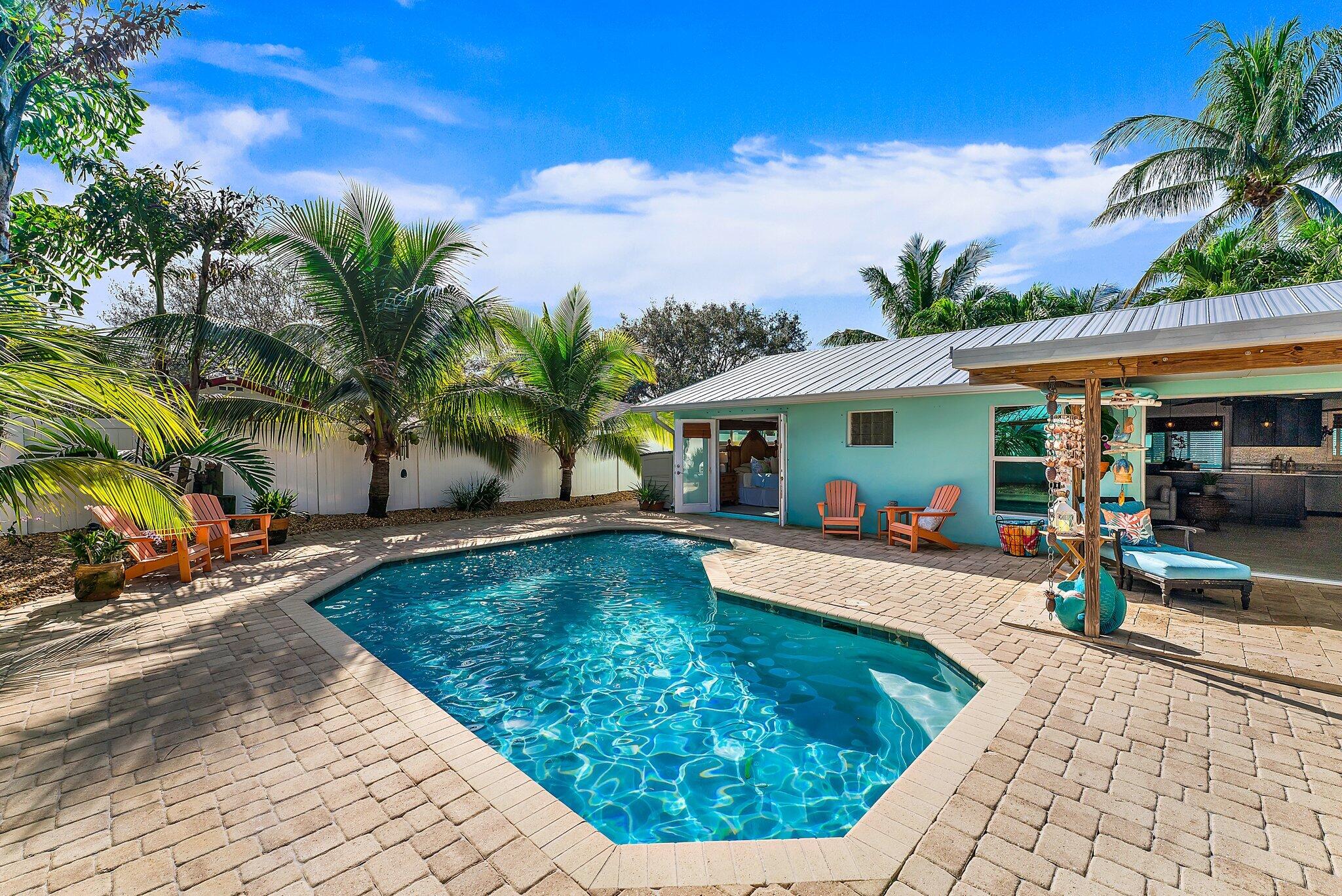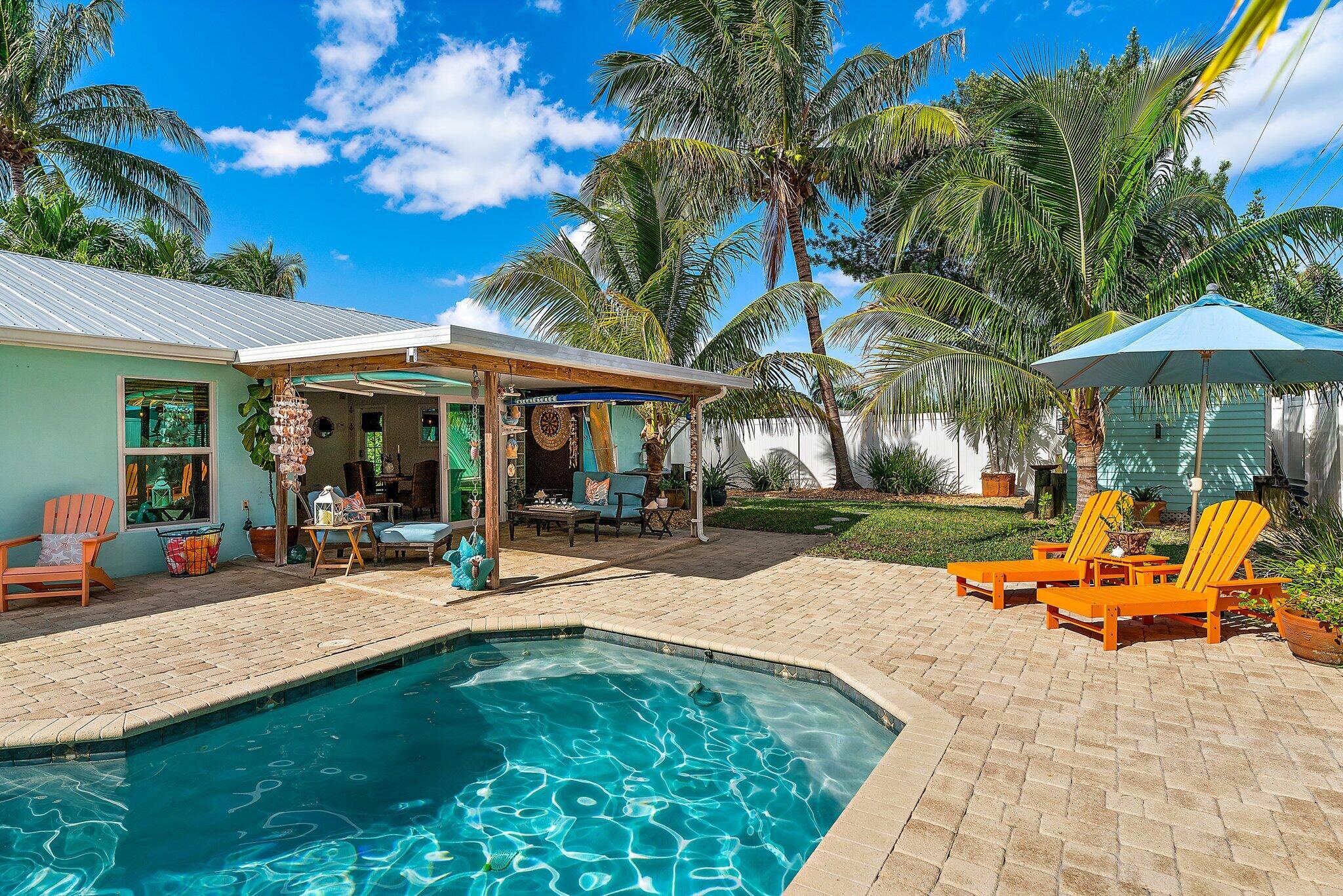 Notable features include a new roof in 2017, an HVAC system installed in 2019, and impact glass windows enhance both the aesthetic appeal and security during hurricane season. Don't forget the adorable matching shed out back with electric inside and out.