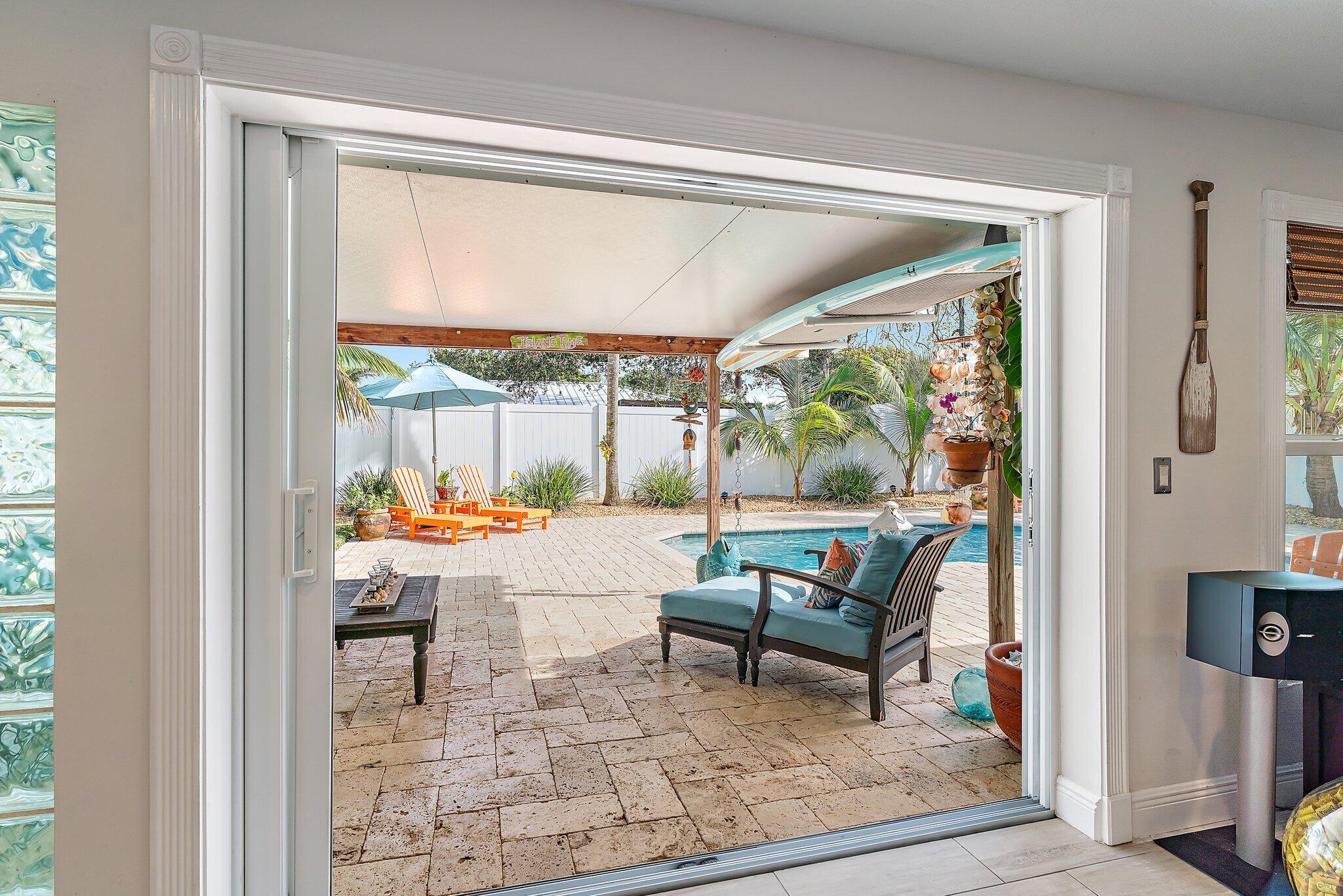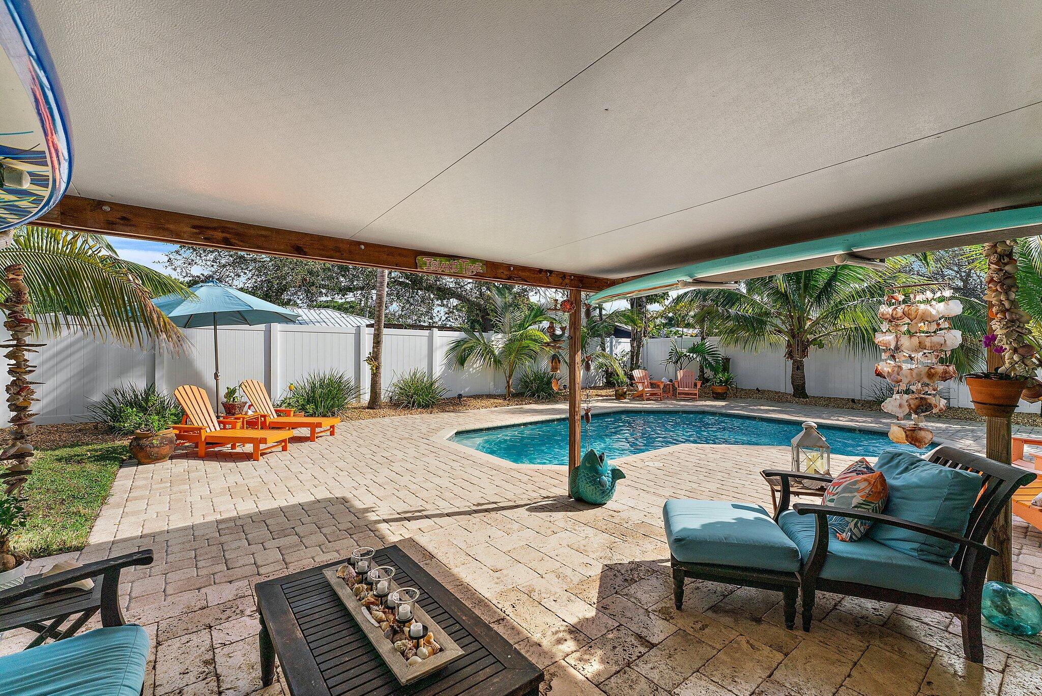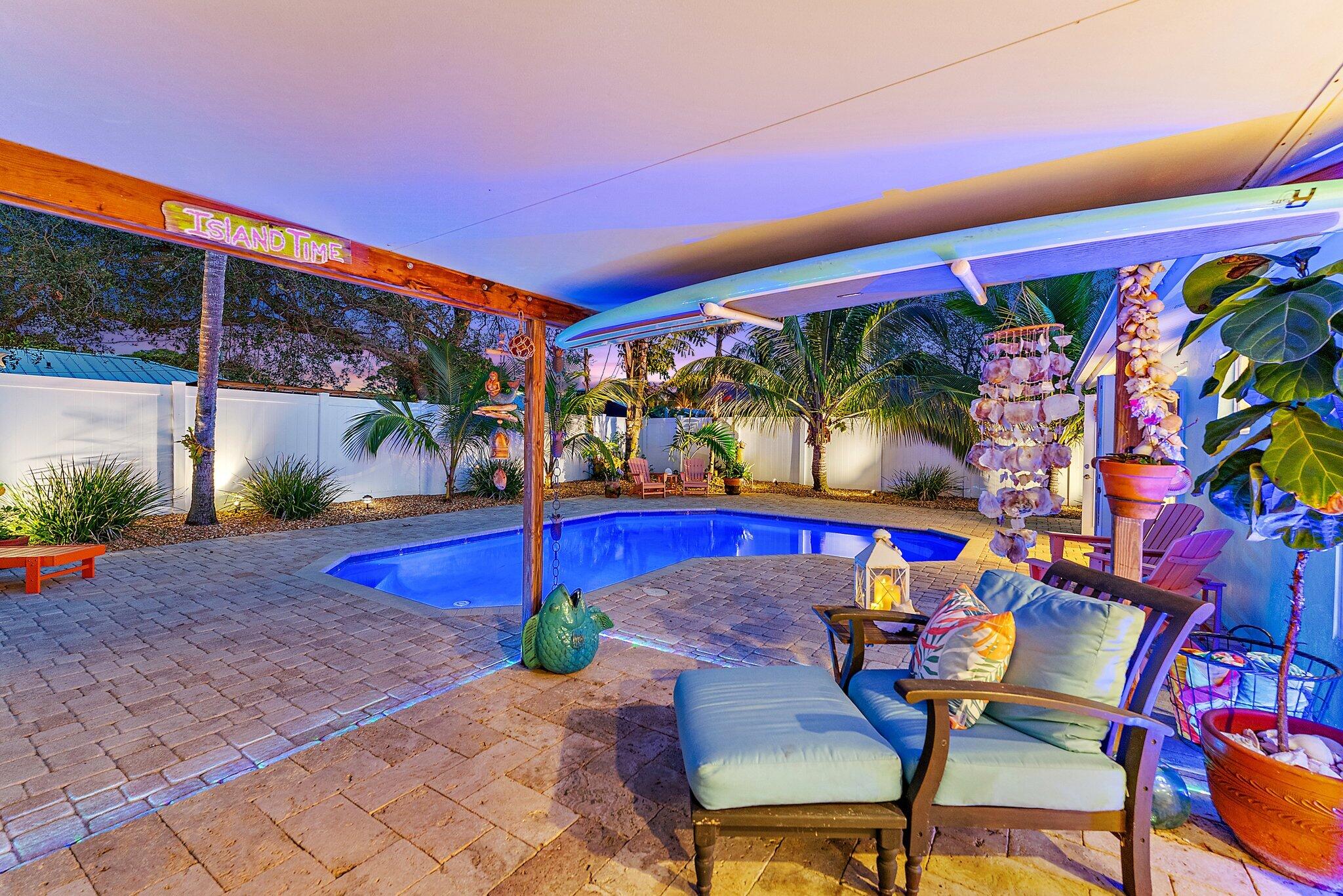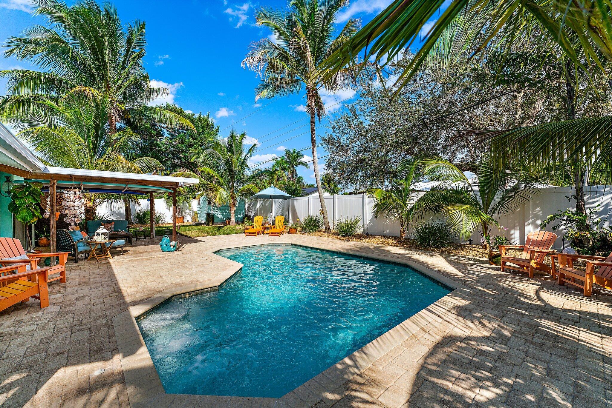 Notable features include a new roof in 2017, an HVAC system installed in 2019, and impact glass windows enhance both the aesthetic appeal and security during hurricane season. Don't forget the adorable matching shed out back with electric inside and out.