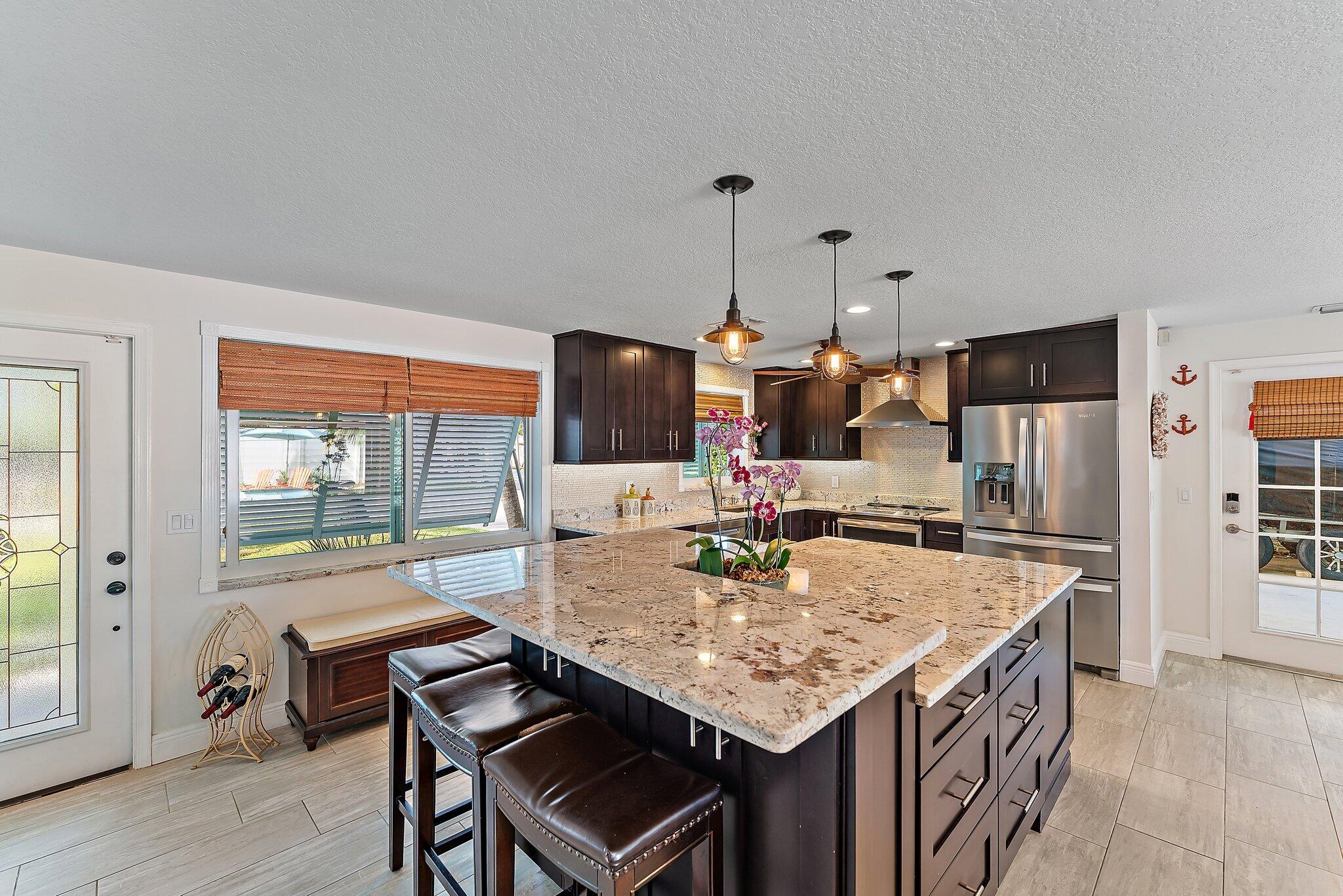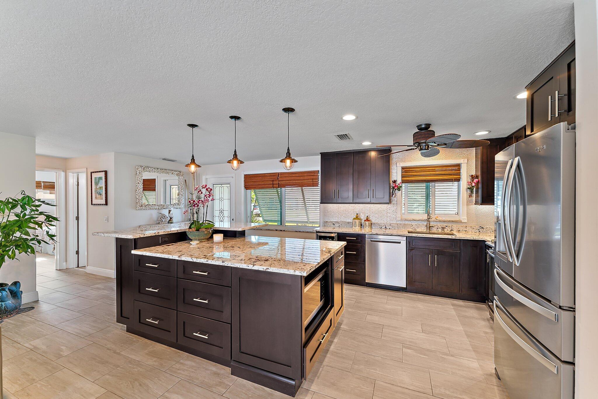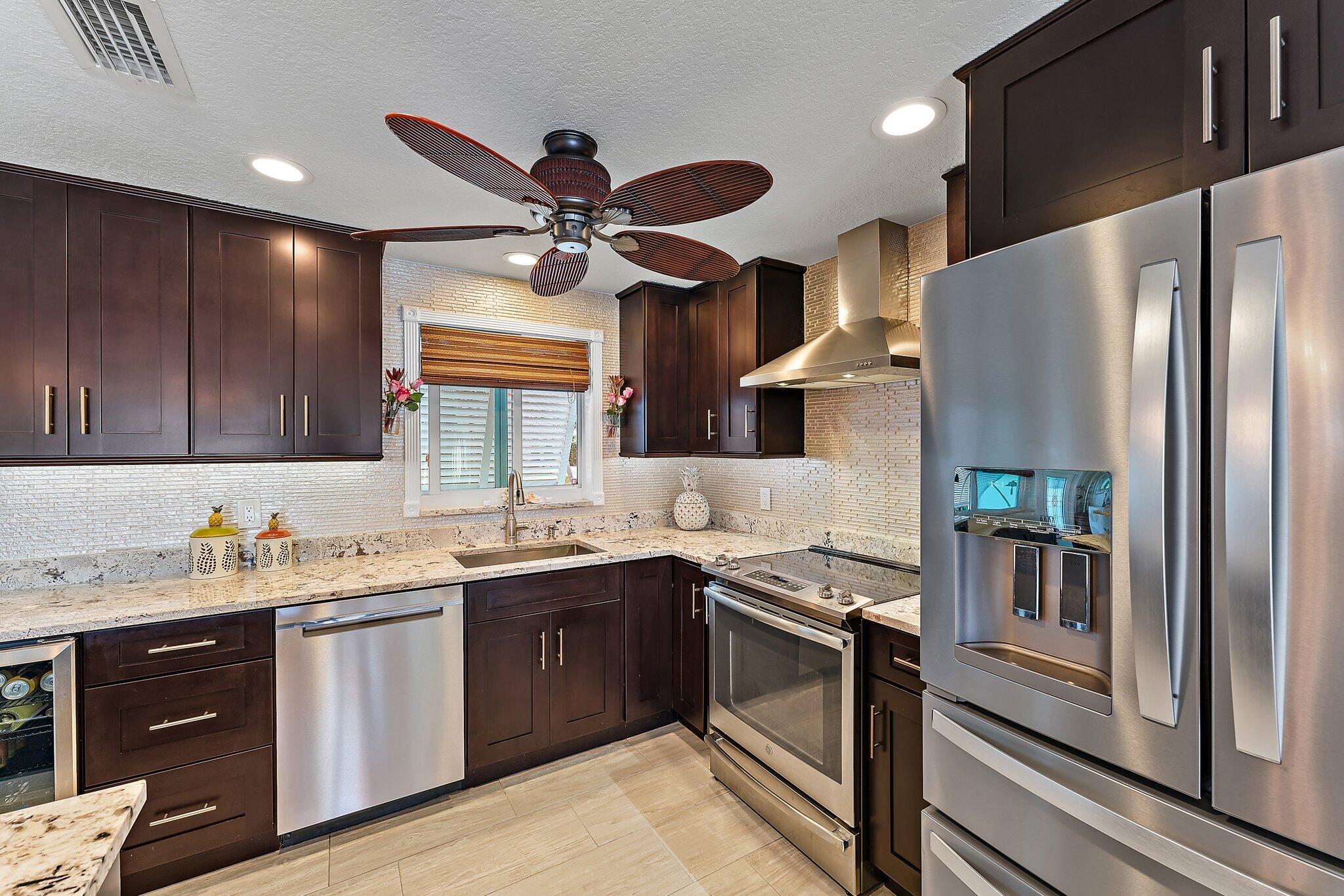 Enchanting and delightful, this 2-bedroom, 2-bathroom home exudes charm and warmth. Step into a stunningly updated & opened kitchen with rich espresso cabinetry and complemented by sleek porcelain tile flooring that seamlessly flows throughout the entire space. The allure continues outdoors with an incredible saltwater pool, creating a captivating oasis for relaxation and entertainment.