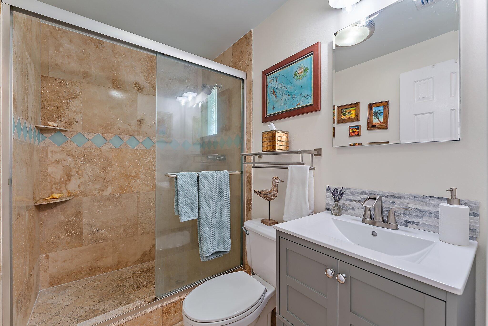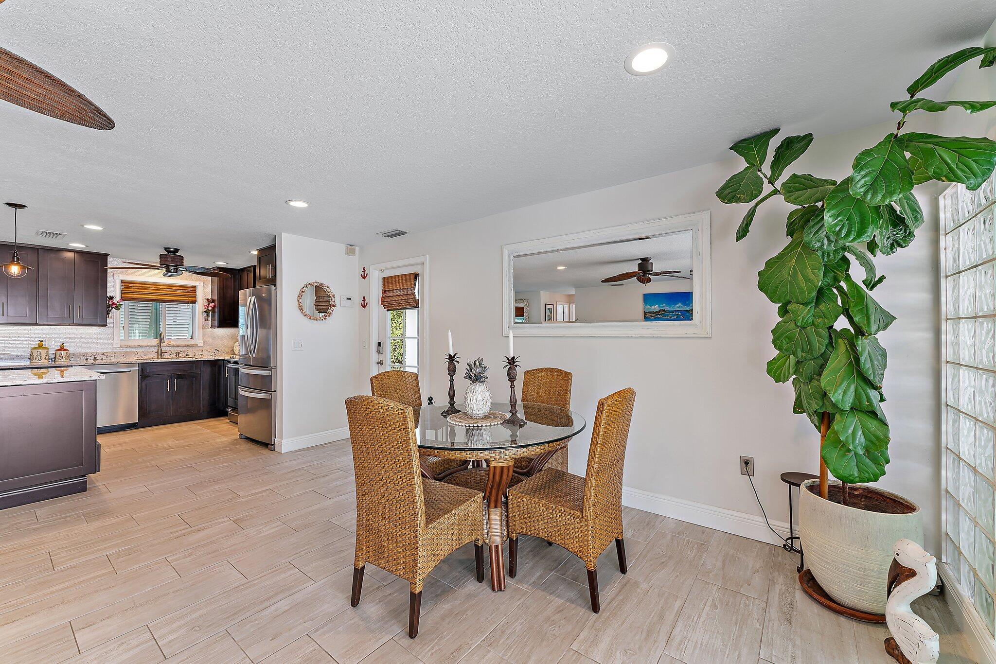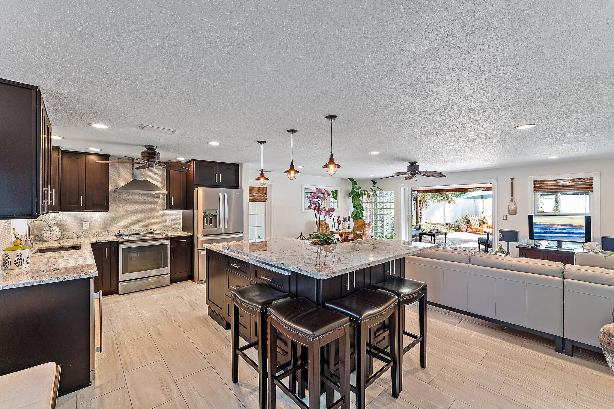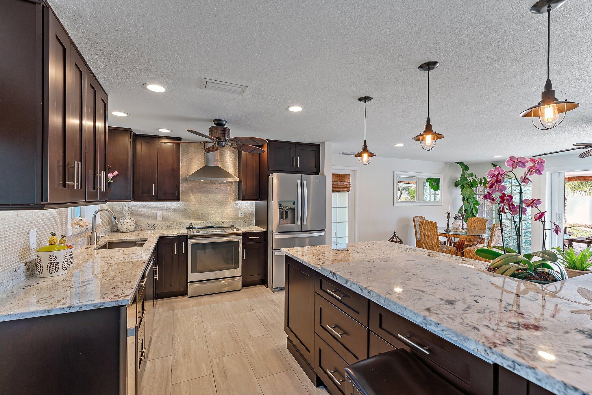 Enchanting and delightful, this 2-bedroom, 2-bathroom home exudes charm and warmth. Step into a stunningly updated & opened kitchen with rich espresso cabinetry and complemented by sleek porcelain tile flooring that seamlessly flows throughout the entire space. The allure continues outdoors with an incredible saltwater pool, creating a captivating oasis for relaxation and entertainment.