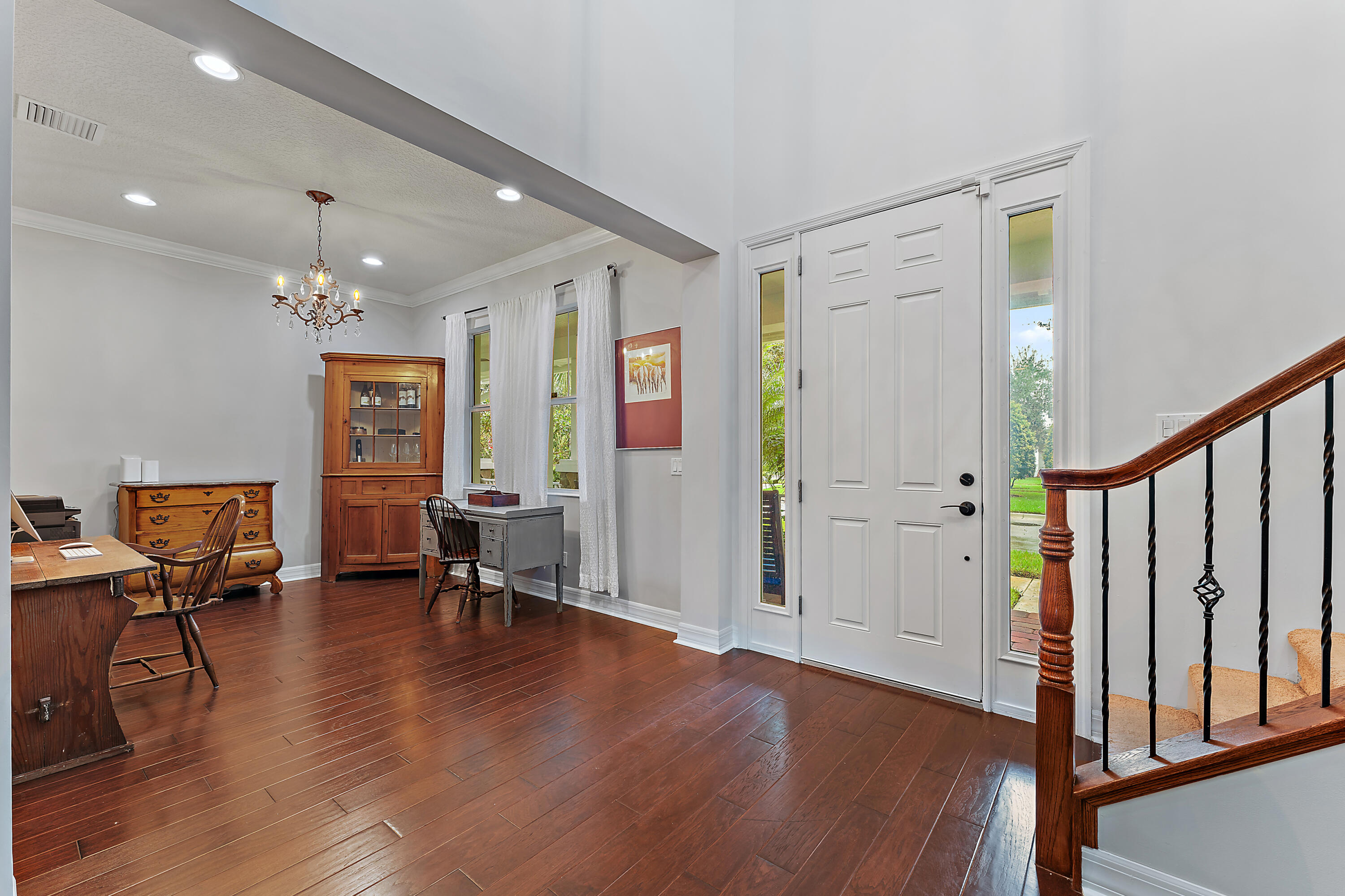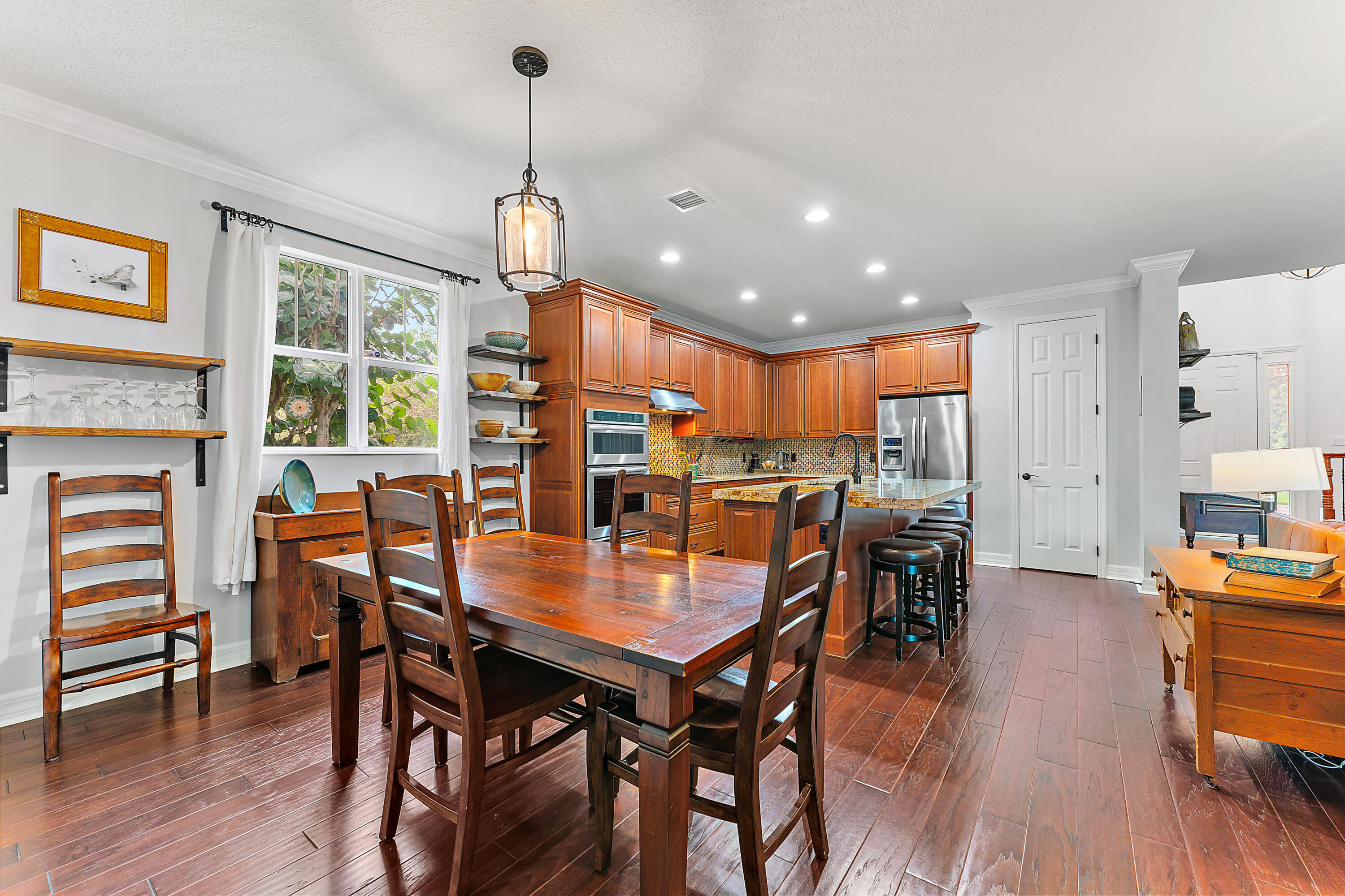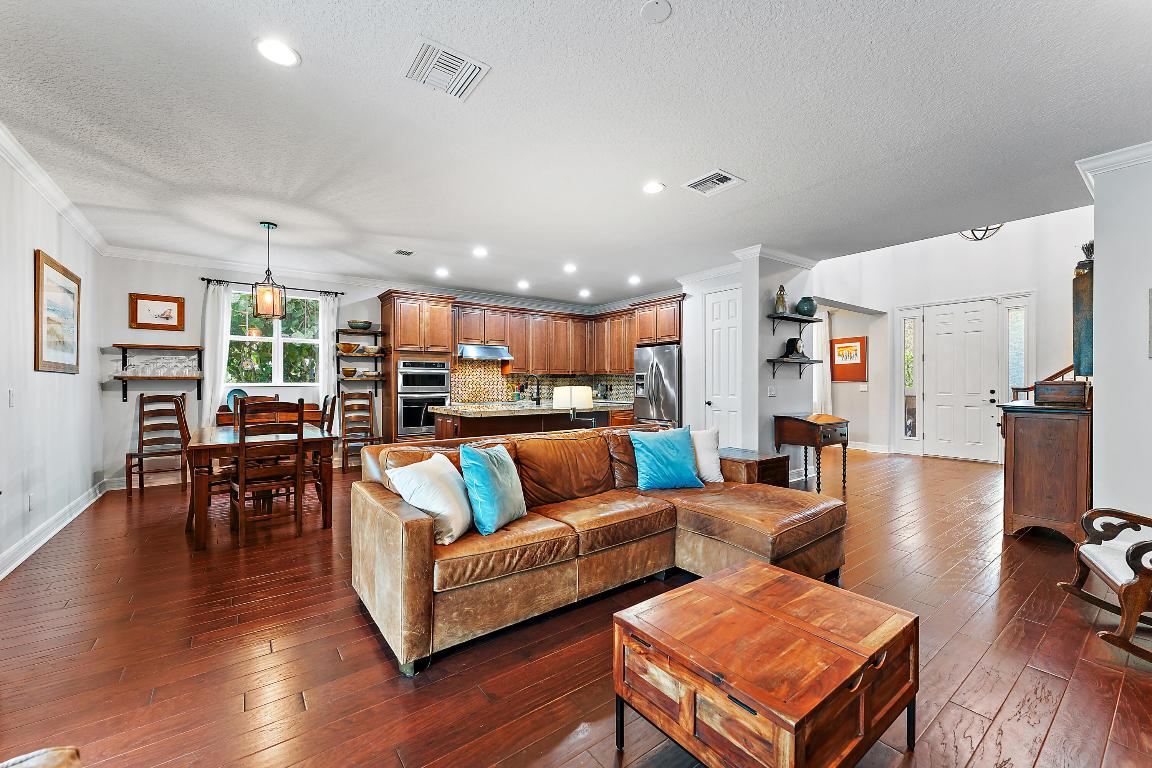 Welcome to this stunning 4-bedroom, 3.5-bathroom single-family home in the highly desirable Windsor Park community of Abacoa. Combining style, comfort, and functionality, this residence features impact glass throughout and beautiful wood floors on the main level. The spacious primary bedroom is conveniently located on the first floor, offering both privacy and accessibility. The elegant formal dining room can be easily transformed to fit your lifestyle--whether as a home office, den, or playroom. The well-designed kitchen flows seamlessly into the living and dining areas, making it perfect for both daily living and entertaining. A large laundry room with ample storage and a convenient powder room complete the first floor of this thoughtfully designed home. New 4 ton HVAC installed 2025. Step outside to the beautifully xeroscaped backyard, a serene, low-maintenance retreat that offers ample space for your outdoor vision. Whether you dream of adding a pool or creating your own personal oasis with lush landscaping, this backyard is ready to be transformed into a relaxing haven perfect for entertaining or unwinding in privacy.