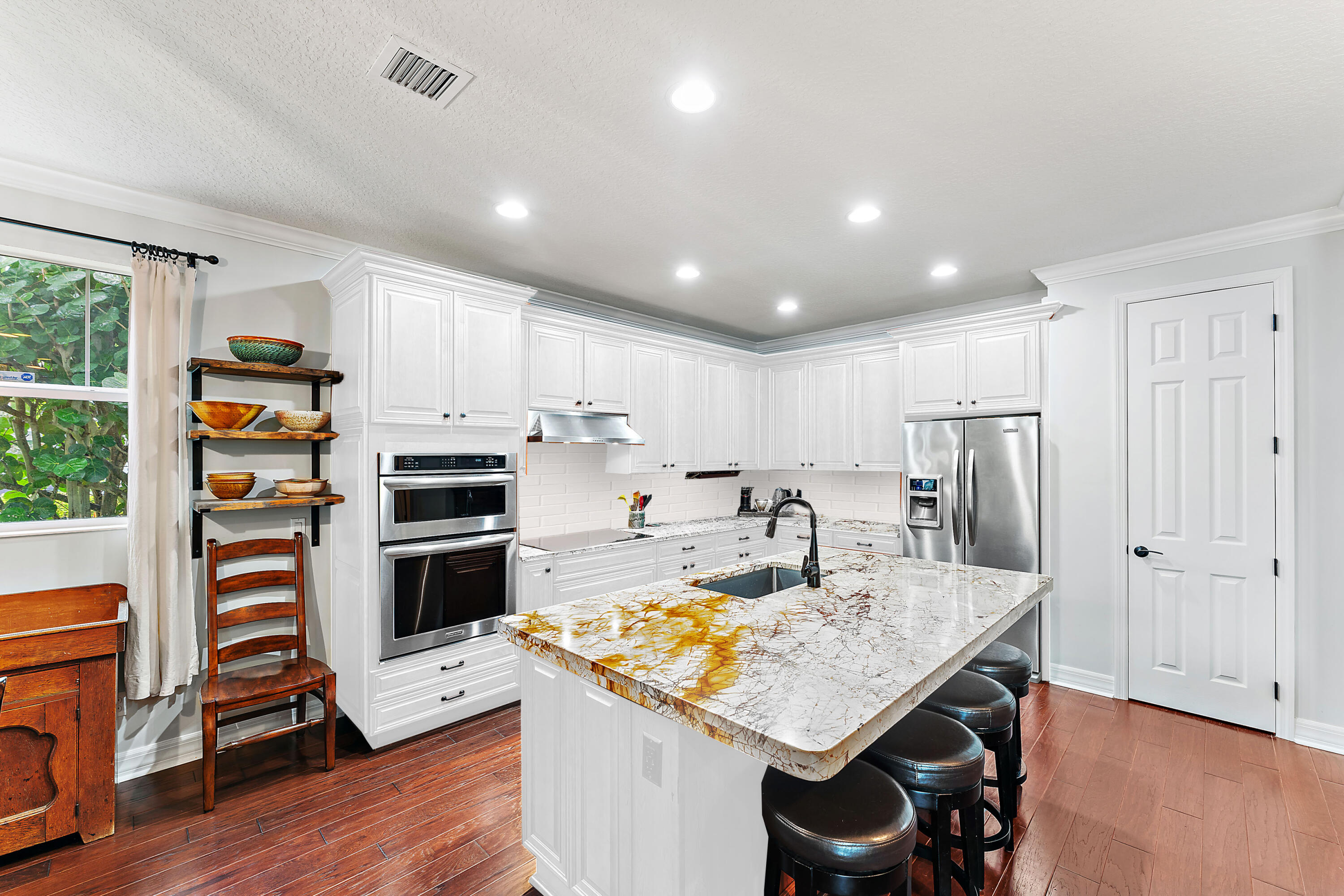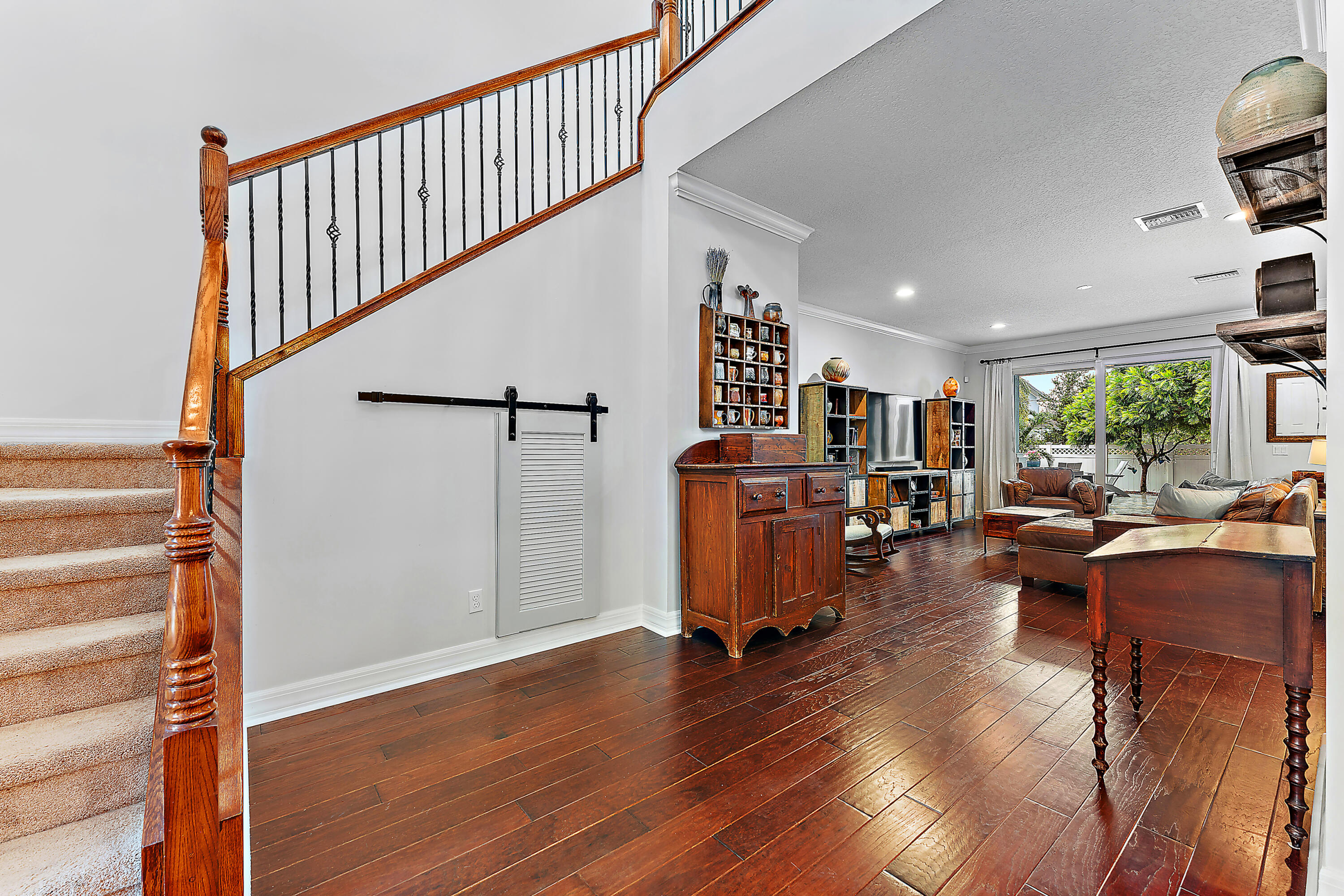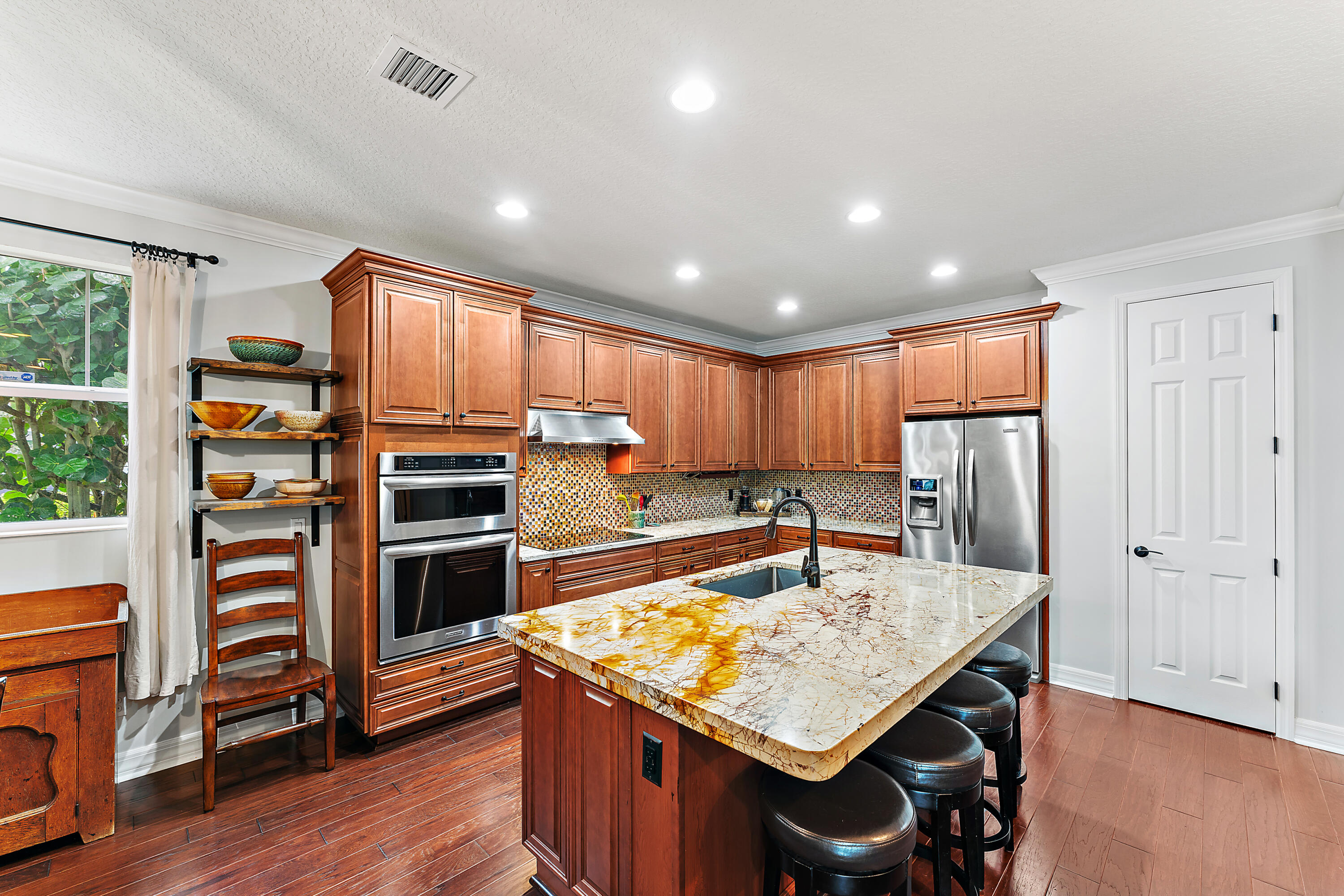 Welcome to this stunning 4-bedroom, 3.5-bathroom single-family home in the highly desirable Windsor Park community of Abacoa. Combining style, comfort, and functionality, this residence features impact glass throughout and beautiful wood floors on the main level. The spacious primary bedroom is conveniently located on the first floor, offering both privacy and accessibility. The elegant formal dining room can be easily transformed to fit your lifestyle--whether as a home office, den, or playroom. The well-designed kitchen flows seamlessly into the living and dining areas, making it perfect for both daily living and entertaining. A large laundry room with ample storage and a convenient powder room complete the first floor of this thoughtfully designed home. New 4 ton HVAC installed 2025. Step outside to the beautifully xeroscaped backyard, a serene, low-maintenance retreat that offers ample space for your outdoor vision. Whether you dream of adding a pool or creating your own personal oasis with lush landscaping, this backyard is ready to be transformed into a relaxing haven perfect for entertaining or unwinding in privacy.