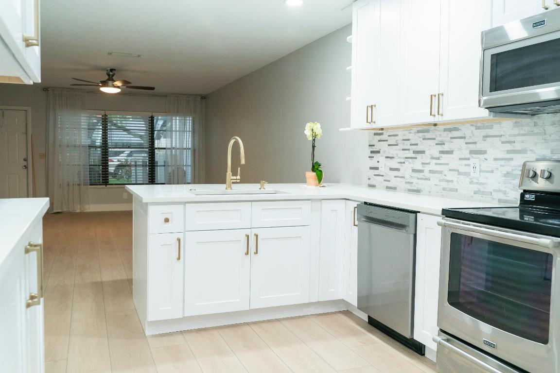 Recently renovated and freshly painted, this beautiful 2-bedroom, 2-bath villa is move-in ready and offers both comfort and convenience. Enjoy a private front patio and a screened-in back patio--perfect for outdoor living. Inside, you'll find a spacious open living area, updated kitchen, and a full-size washer and dryer in a separate laundry area. Accordion shutters provide added peace of mind. Located in a walkable community with plenty of outdoor space, and just minutes from Jupiter Medical Center, top shopping and dining, beaches, I-95, and the airport. Ideal for professionals, couples, or anyone seeking a clean, updated villa in a prime location.