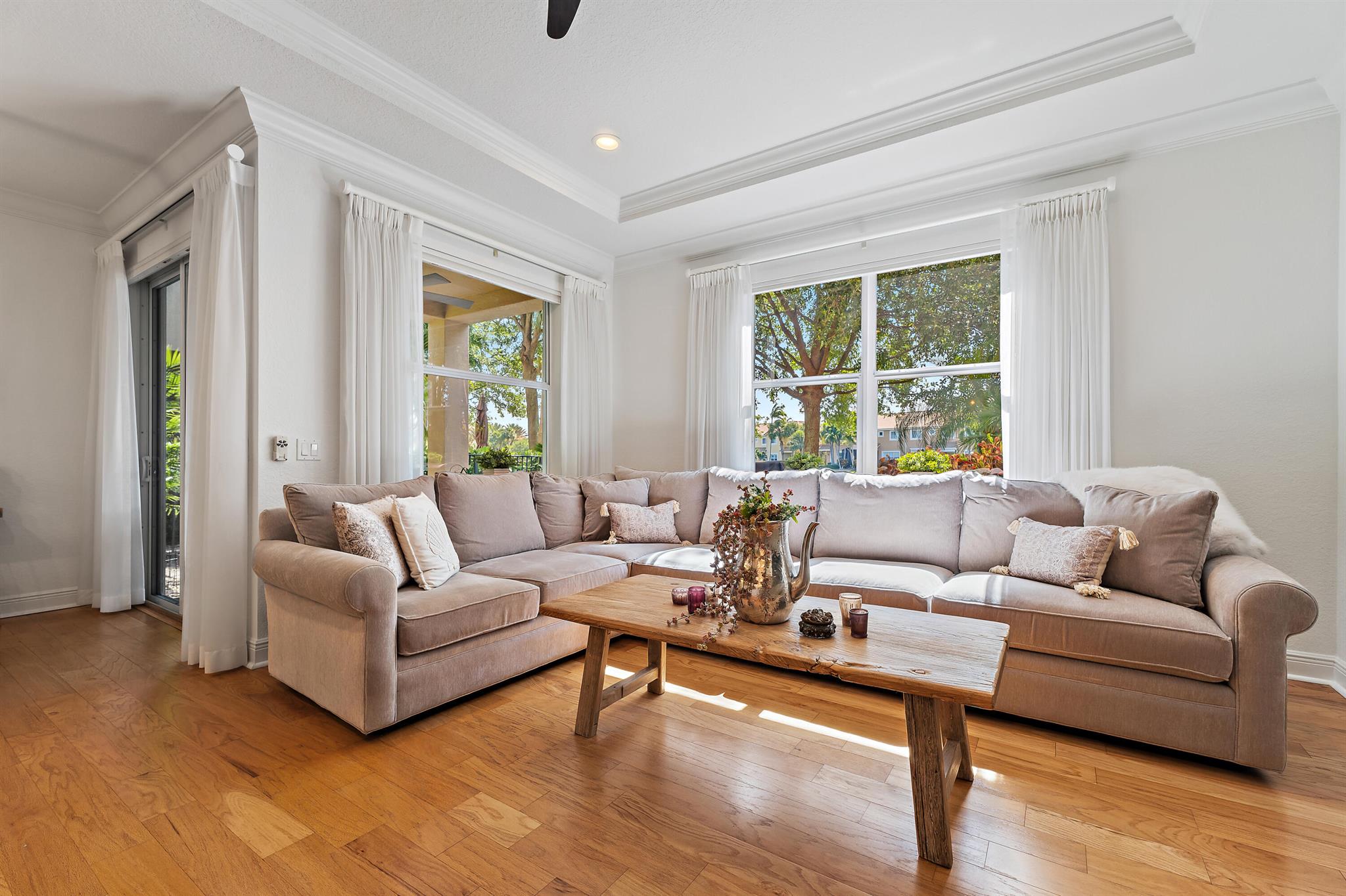 Rarely Available Lakefront End Unit Townhome in Paloma with Private Fenced Yard. Where else can you find a townhome with its own private, fenced backyard overlooking a peaceful lake--plus the added space and light of an end unit--all within a gated, amenity-rich community? This beautifully updated 3-bedroom, 2.5-bath townhome in Paloma truly stands out. Enjoy a recently redesigned kitchen with 42'' soft-close wood cabinetry, quartz countertops, and a marble backsplash. The home features engineered wood flooring throughout, including the stairs, upgraded recessed lighting, and full impact glass protection for safety and efficiency. Upstairs, in addition to the spacious bedrooms, you'll find a versatile loft area--perfect for a home office, playroom, or second living space. The primary suite