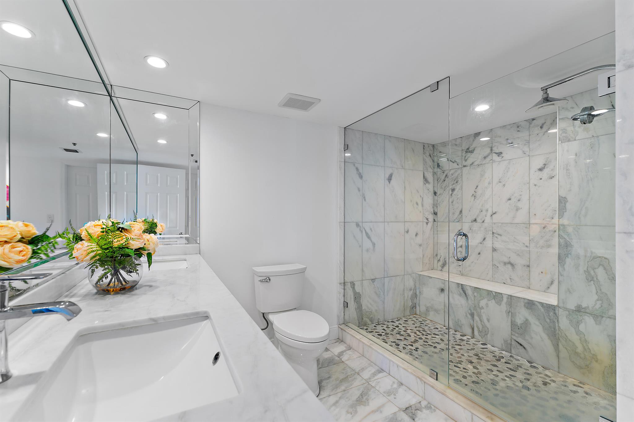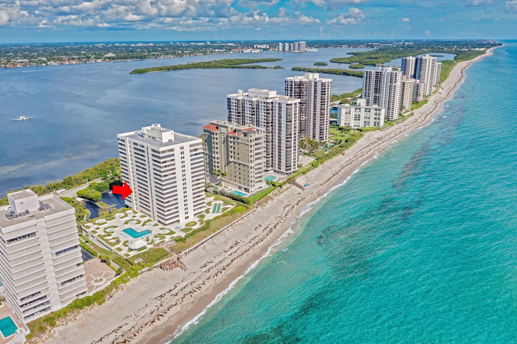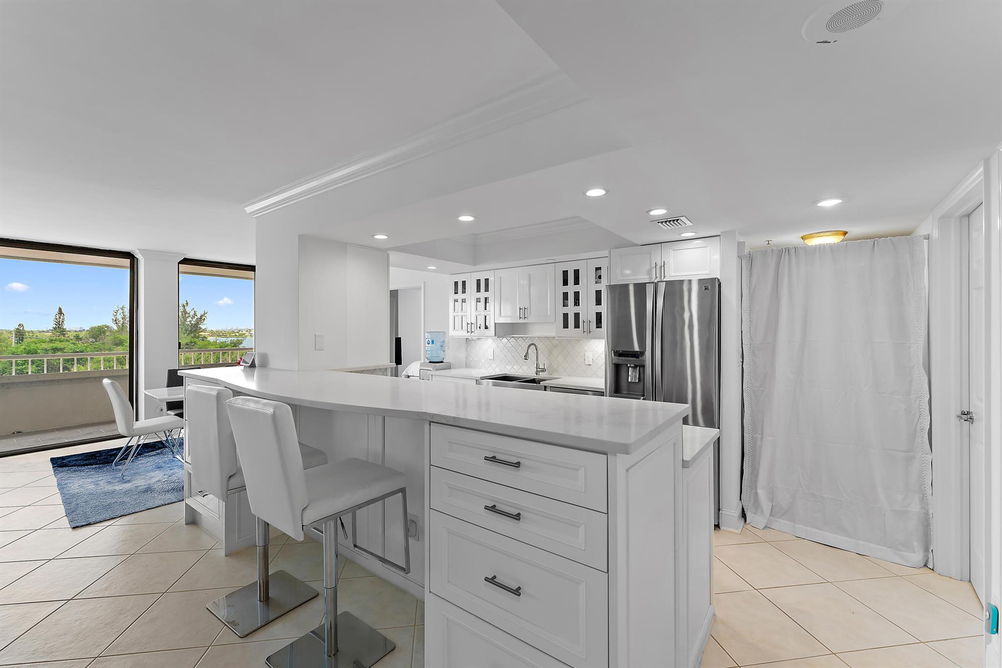 Welcome to The Reaches on Singer Island, a stunning luxury oceanfront condo offering unparalleled elegance and comfort. The Reaches boasts one of the lowest monthly association fees on the island, making it a smart investment in luxury living.This rare 3-bedroom, 2.5-bath residence features breathtaking views of both the ocean and the Intracoastal from its expansive 45-foot balcony, accessible from all bedrooms and living areas--perfect for soaking up the sunny southern exposure. The condo has been exquisitely updated with modern finishes, including white cabinetry, quartz countertops, an arabesque backsplash, and stainless steel appliances in the open-concept kitchen. The kitchen's island offers additional storage, blending style with functionality. A custom wet bar and beautifully