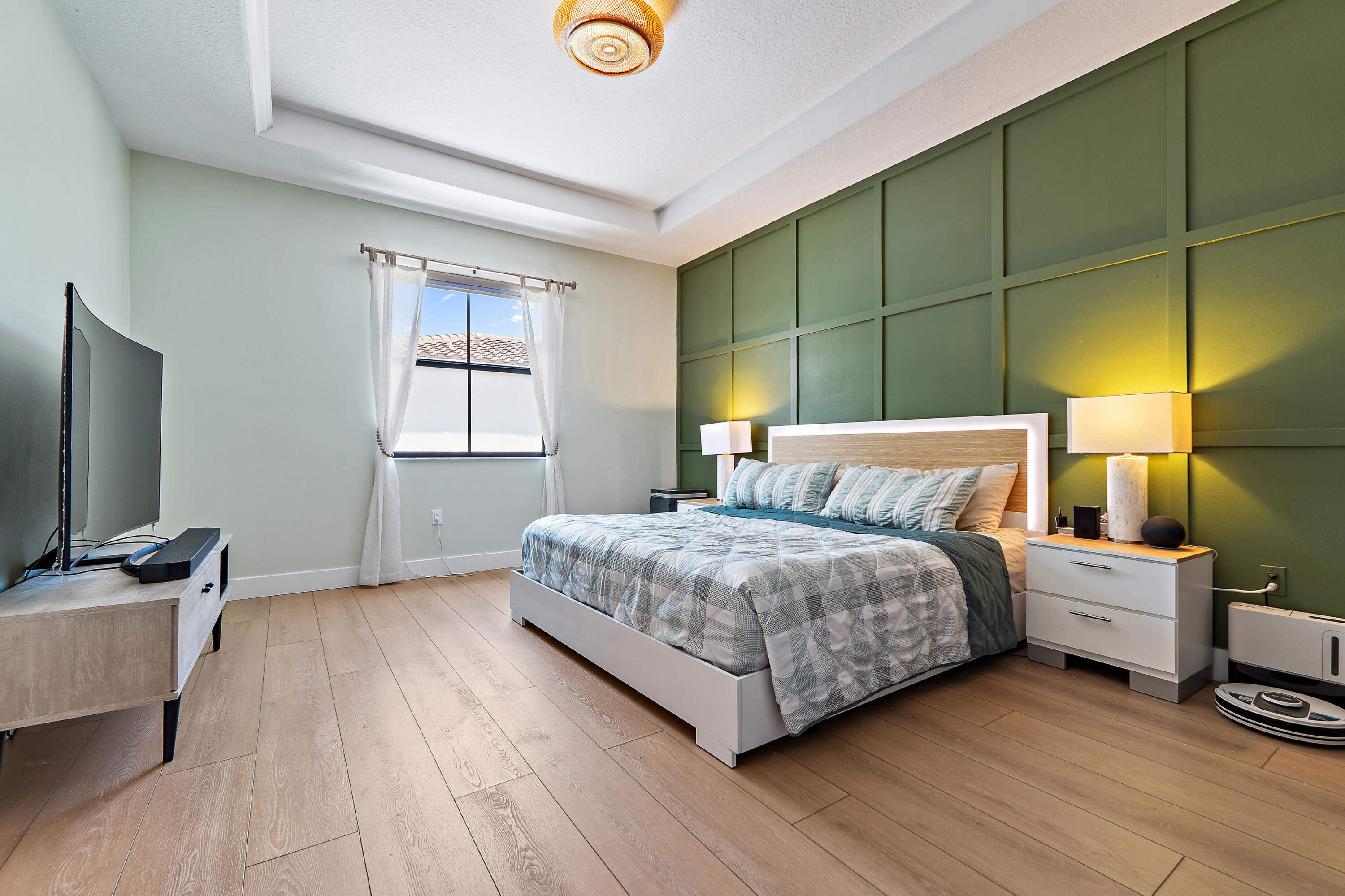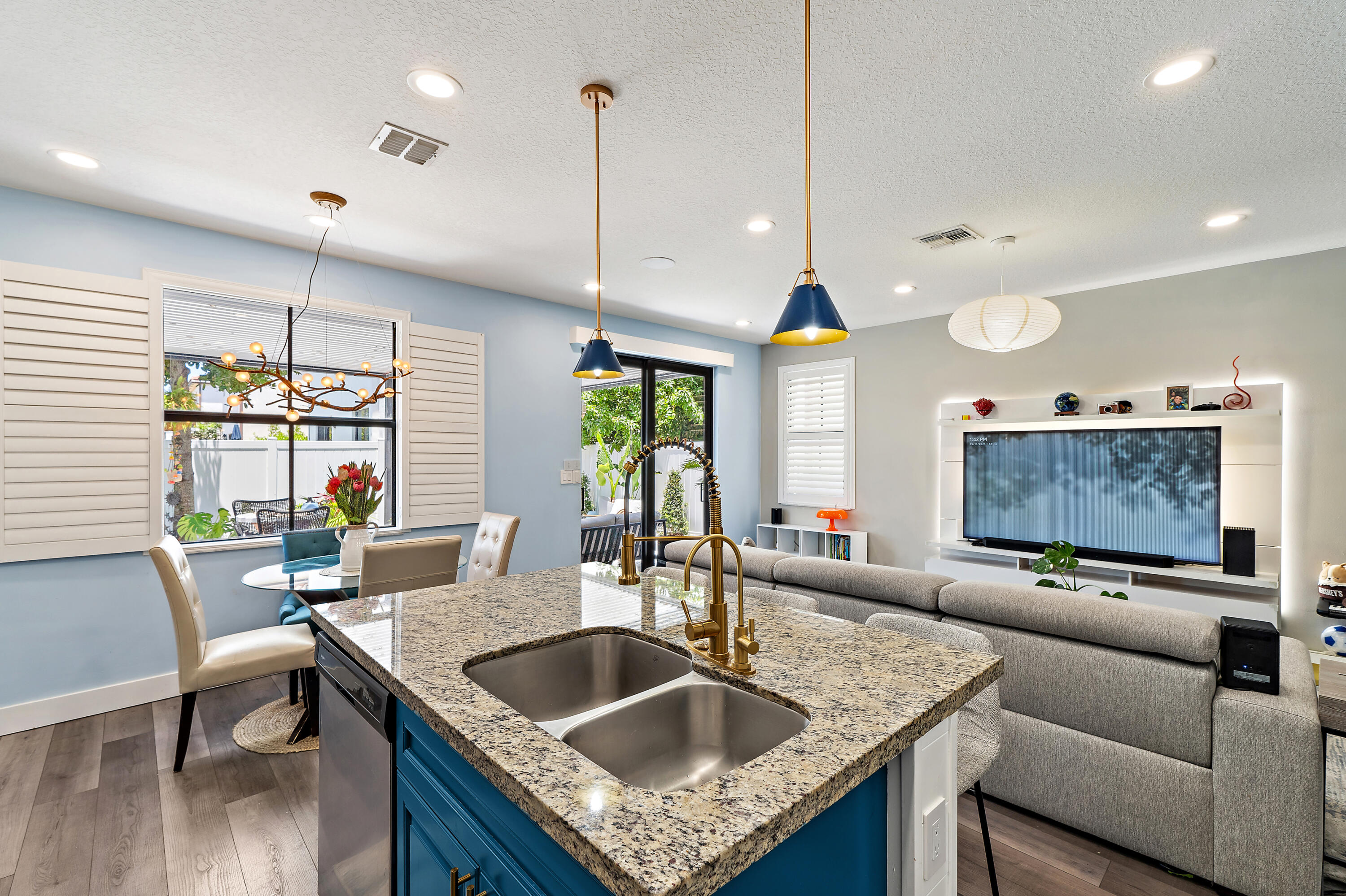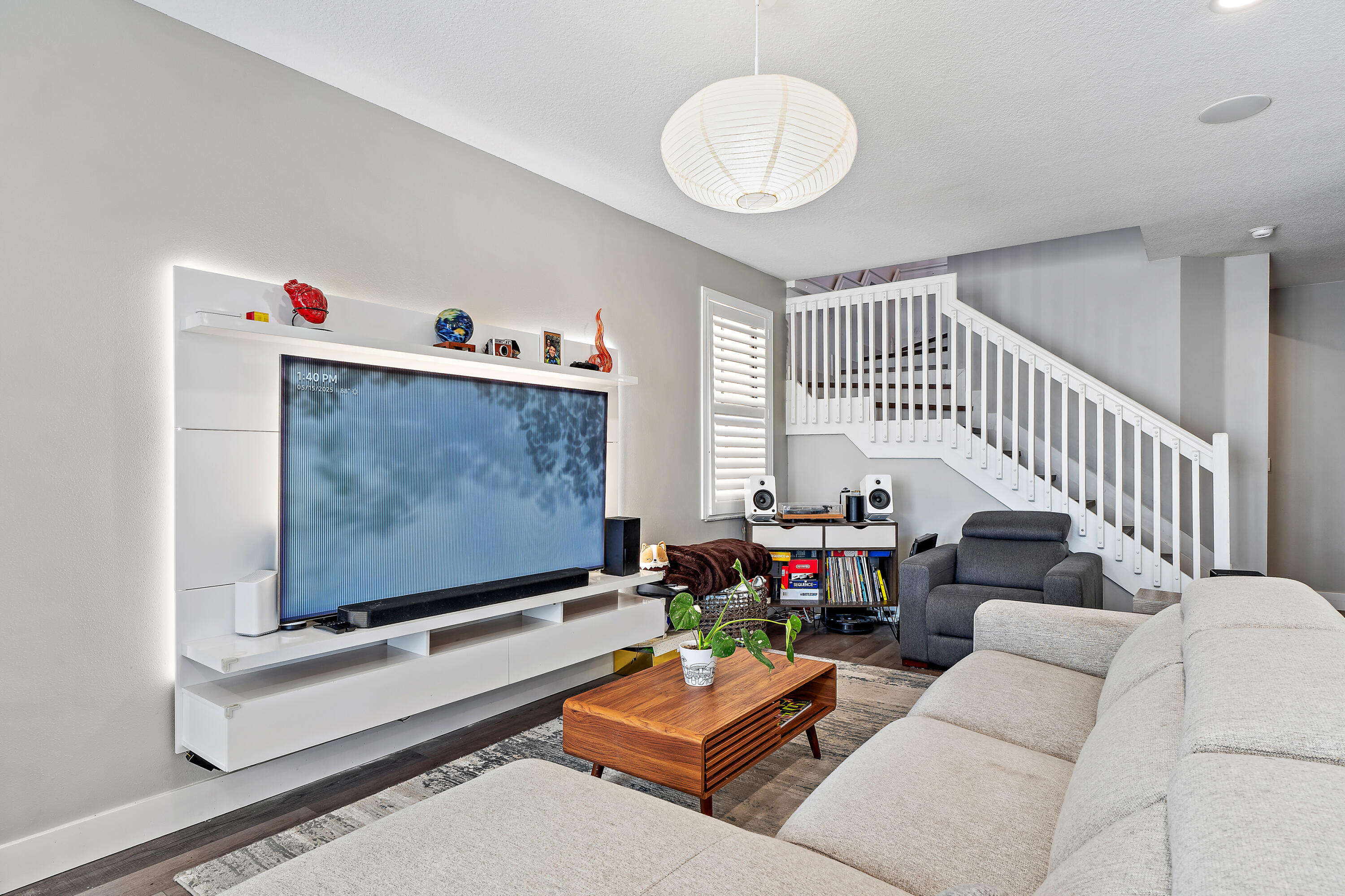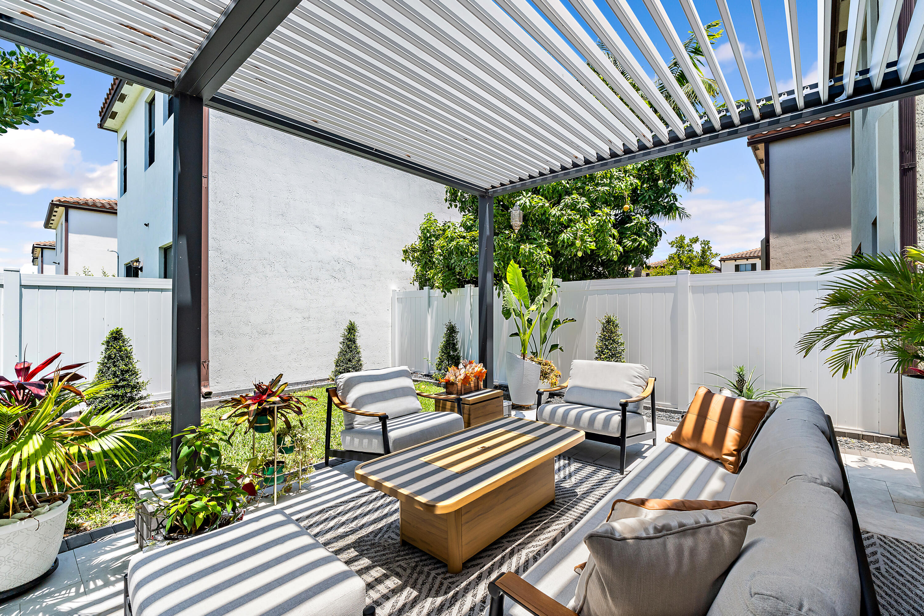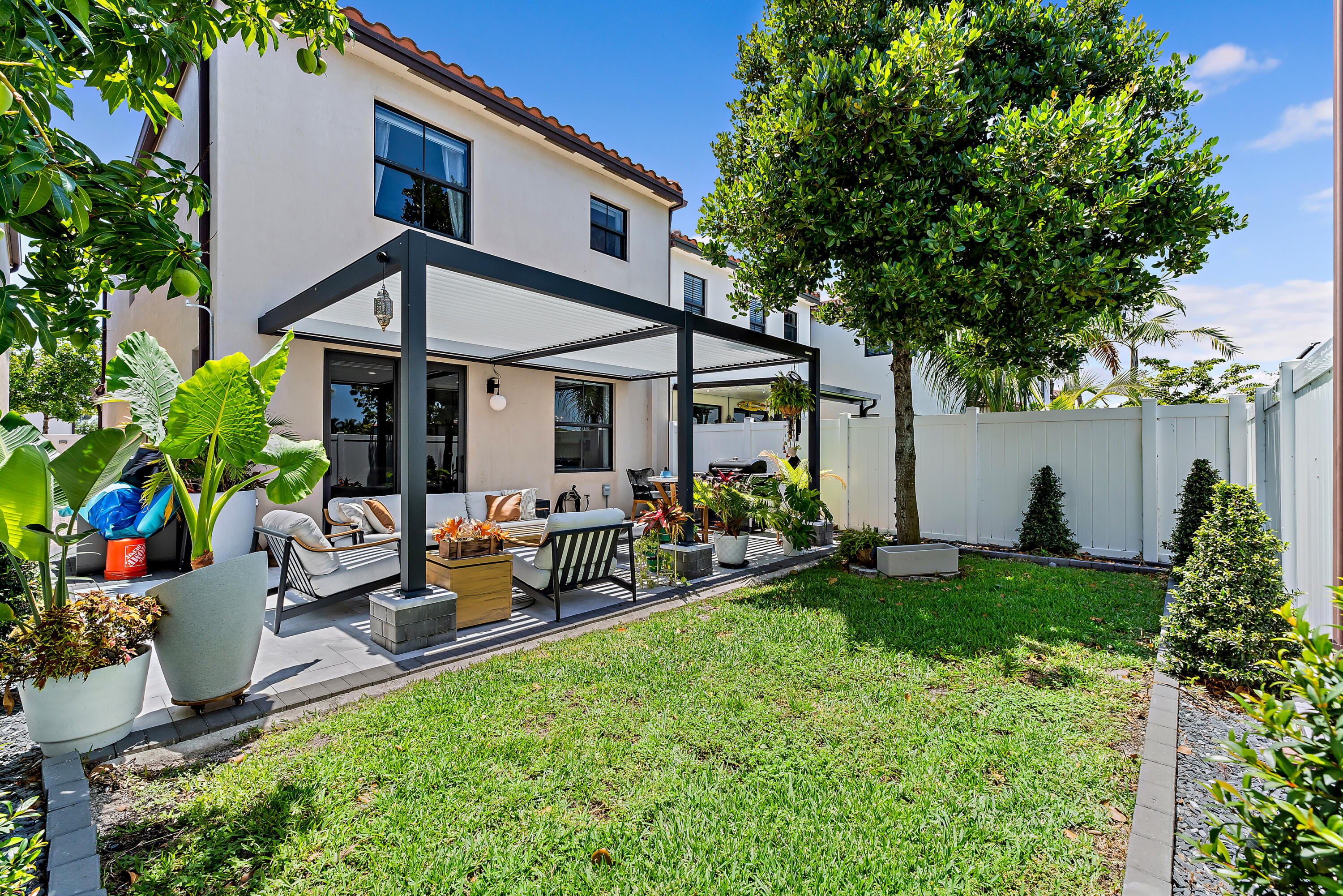 The garage is equally impressive with epoxy flooring, an EV charger, and overhead storage for added convenience. Smart home-enabled, the property features hue-changing lighting throughout, allowing you to customize the ambiance in every room. A built-in sound system in the living room and outdoor areas elevates your entertainment experience. Step outside to a beautifully upgraded backyard with travertine decking and a custom pergola. The automated louvered roof adjusts based on your lighting preferences or closes automatically in the rainperfect for seamless indoor-outdoor living. The pergola also features integrated lighting for nighttime enjoyment, making this space ideal for relaxing or entertaining year-round.